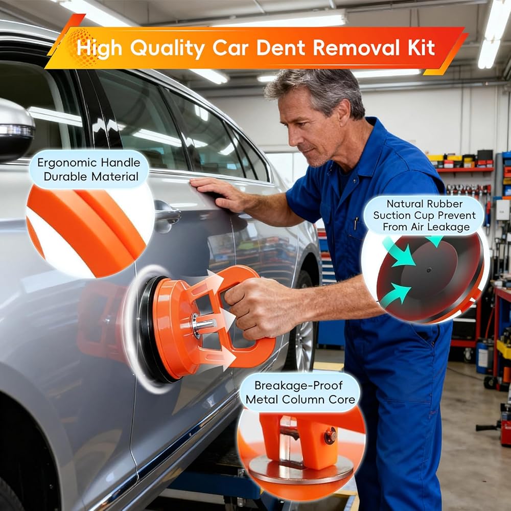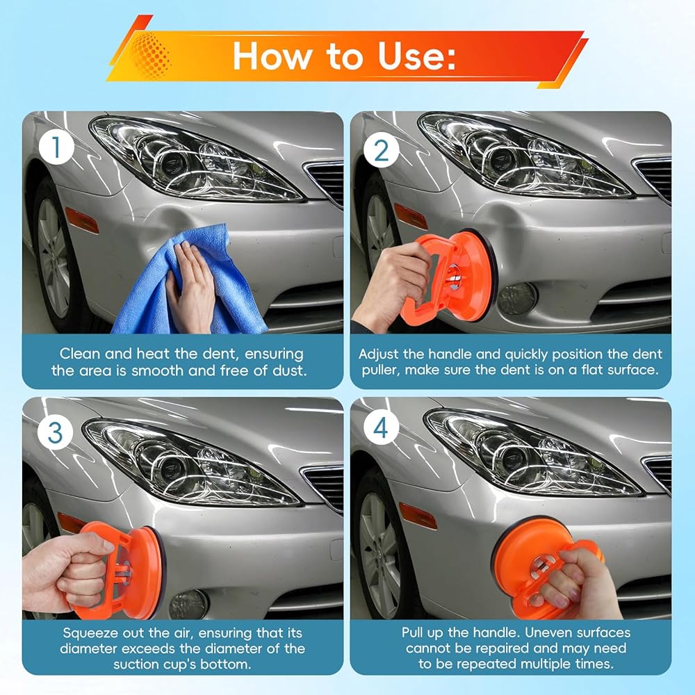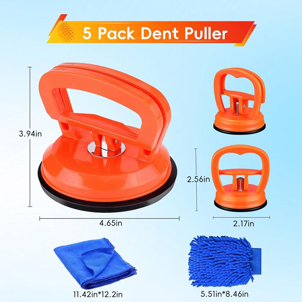 أداة سحب انبعاجات السيارة مع حمل قوي: تشتمل مجموعة أدوات سحب انبعاجات السيارة هذه على ساحبين كبيرين (4.5 بوصة/12 سم) و2 صغيرين (2.2 بوصة/5.5 سم). يدعم كوب الشفط الكبير ما يصل إلى 120 رطلًا أفقيًا و80 رطلًا رأسيًا، بينما تعالج الخدوش الصغيرة الخدوش الصغيرة - مثالية لإصلاح أحجام الخدوش المختلفة في السيارات.