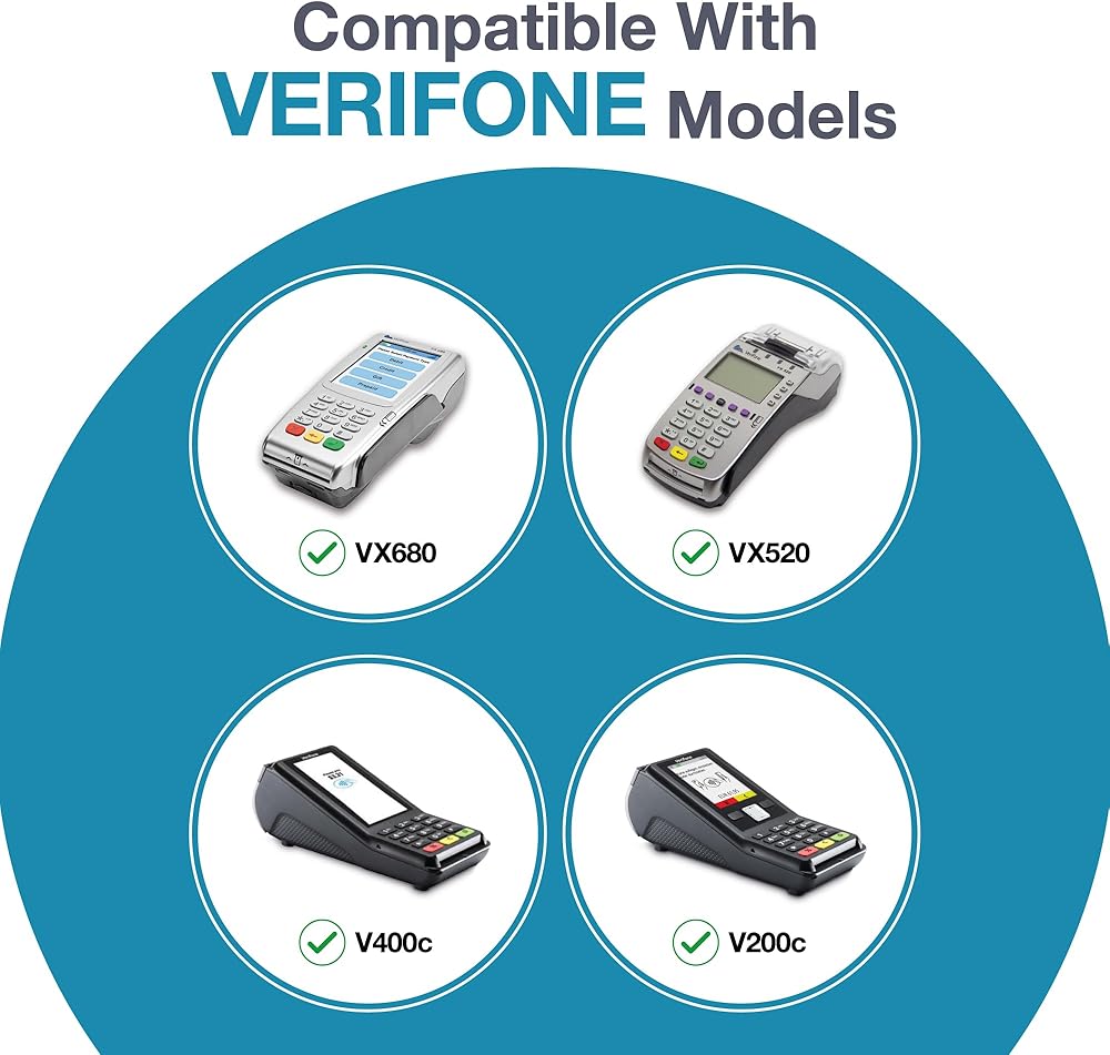 متوافق مع مجموعة واسعة من محطات Verifone الطرفية: مصمم خصيصًا للاستخدام السلس مع محطات الدفع Verifone بما في ذلك سلسلة VX (520، 805، 820)، T650، T650p، P400m، M452 والمزيد - مما يوفر الملاءمة المثالية والأداء الموثوق.