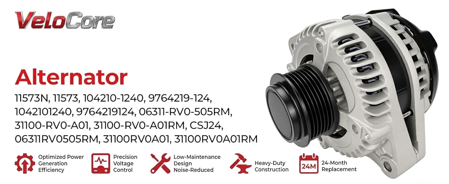 • 【ضمان لمدة 24 شهرًا】 يمكنك الشراء بثقة مطلقة. يتم دعم VeloCore Alternator الخاص بك من خلال التزامنا بالجودة وضمان شامل لمدة 24 شهرًا. يتم اختبار كل وحدة قبل الشحن لضمان أداء شحن مستقر. إذا واجهت أي مشكلات، فإن فريق الدعم لدينا في الولايات المتحدة جاهز لتقديم المساعدة.