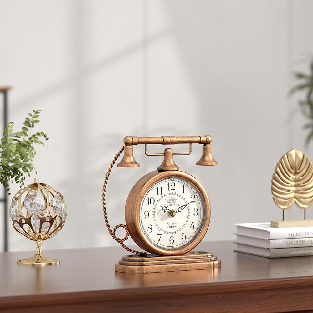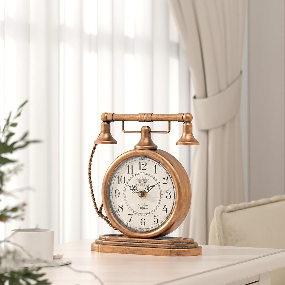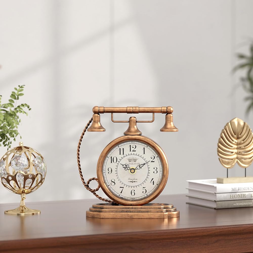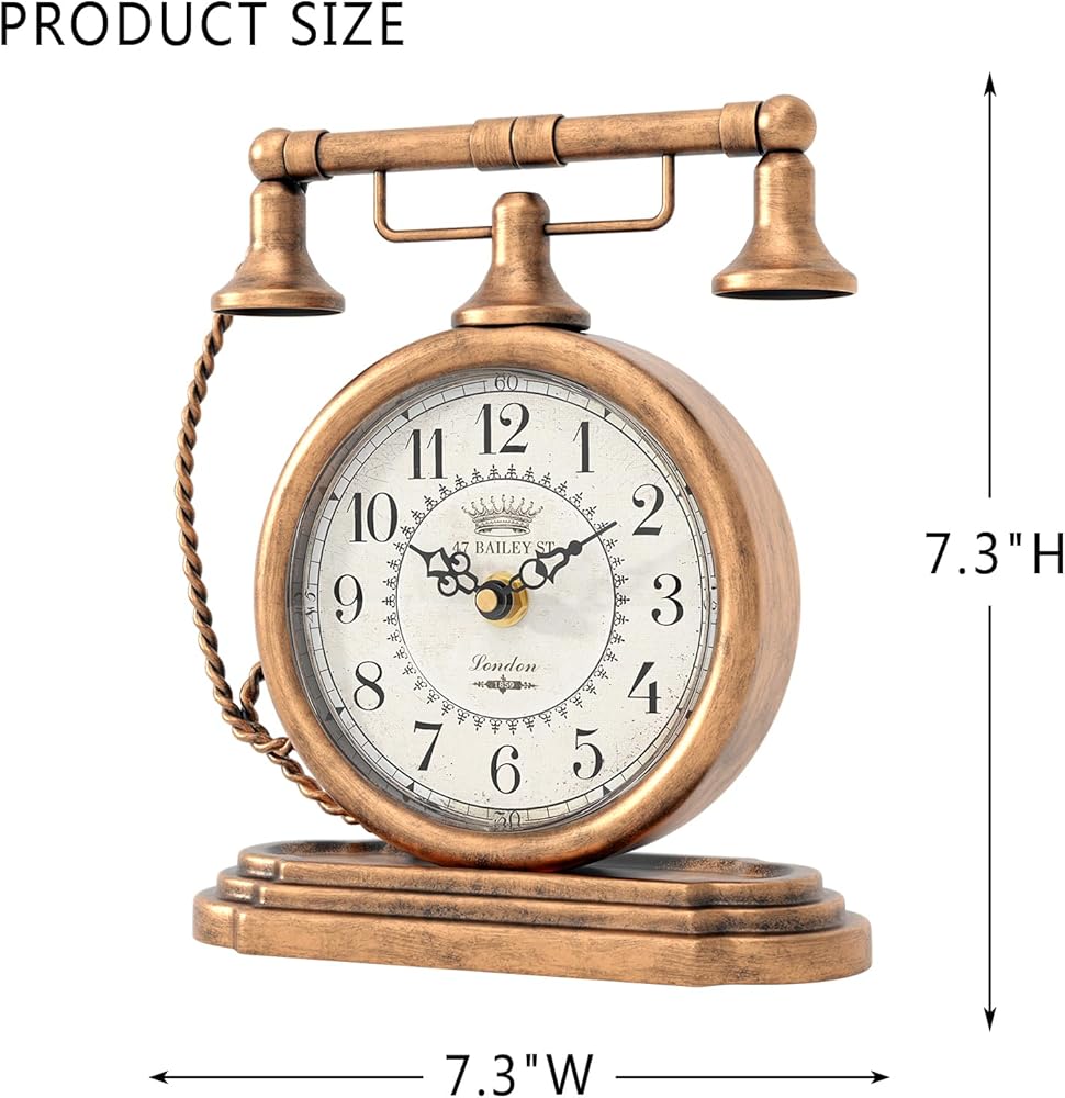ساعة طاولة كلاسيكية من Glod، ساعات رف على طراز الهاتف العتيق، ساعة ديكور للمكتب والرف، لغرفة المعيشة، المزرعة، بجانب السرير، غرفة النوم، هدية (7.3 بوصة ارتفاع × 7.3 بوصة عرض)