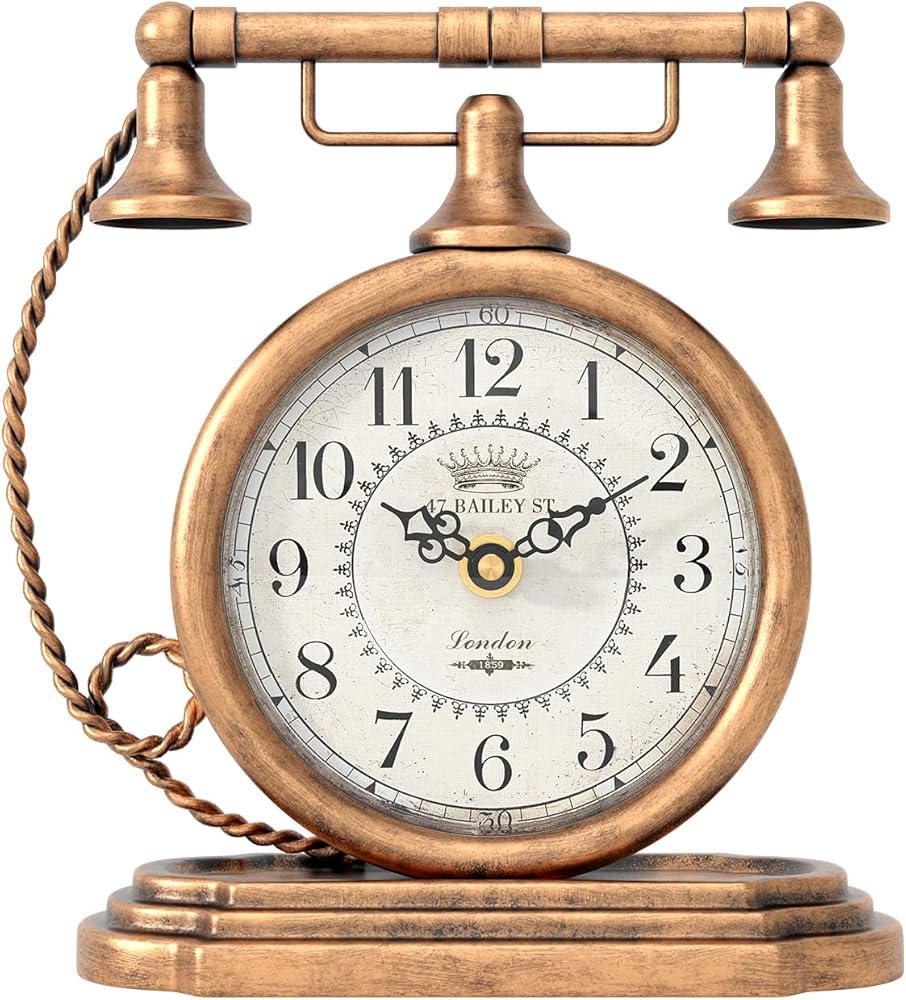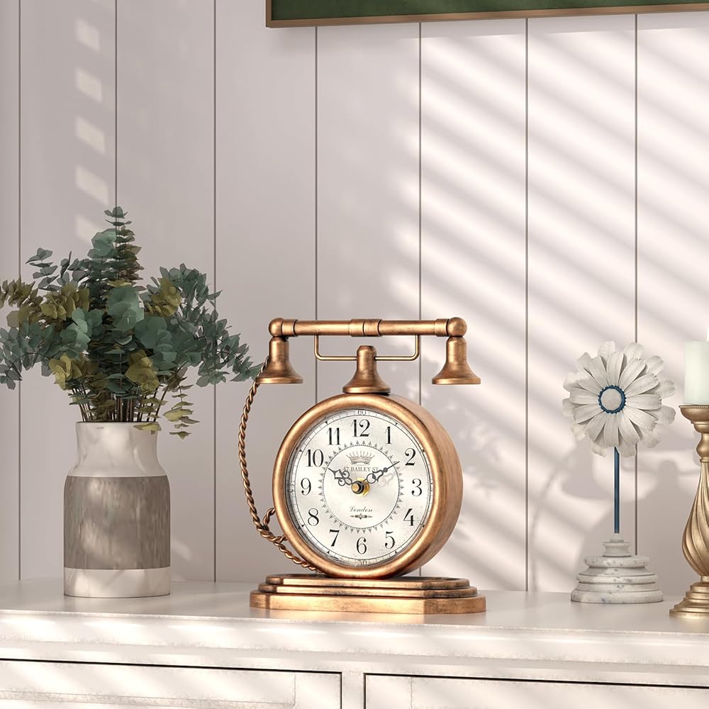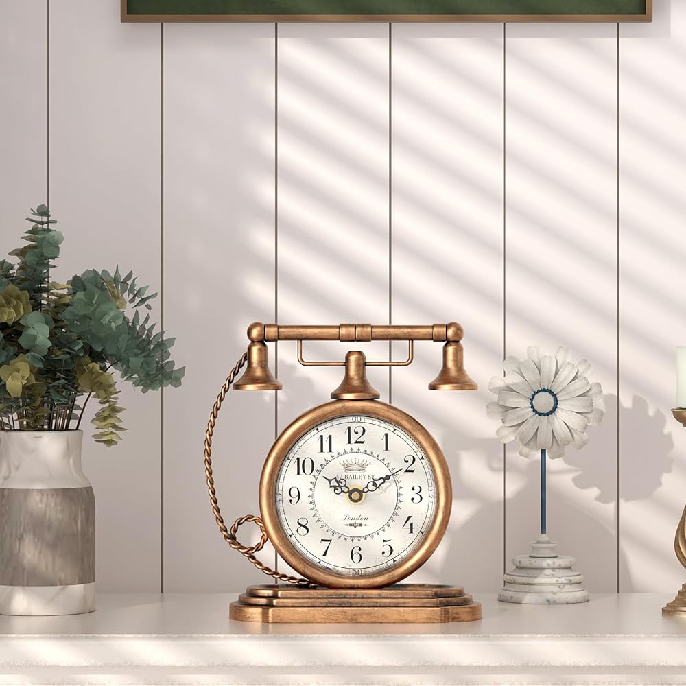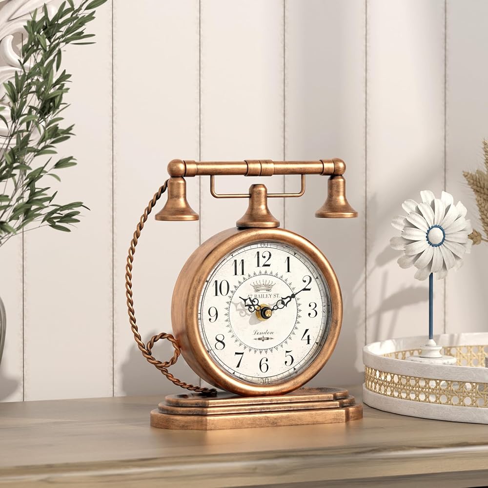 ساعة طاولة كلاسيكية من Glod، ساعات رف على طراز الهاتف العتيق، ساعة ديكور للمكتب والرف، لغرفة المعيشة، المزرعة، بجانب السرير، غرفة النوم، هدية (7.3 بوصة ارتفاع × 7.3 بوصة عرض)