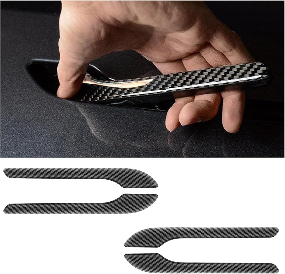 مادة ألياف الكربون الراقية: غطاء مقبض الباب لسيارة Tesla Model 3 2026-2017 Model Y 2026-2019 مصنوع من ألياف الكربون عالية اللمعان + طلاء الراتنج وبلاستيك ABS المتين، مع سطح لامع مقاوم للخدش وغير متقرح ومتين