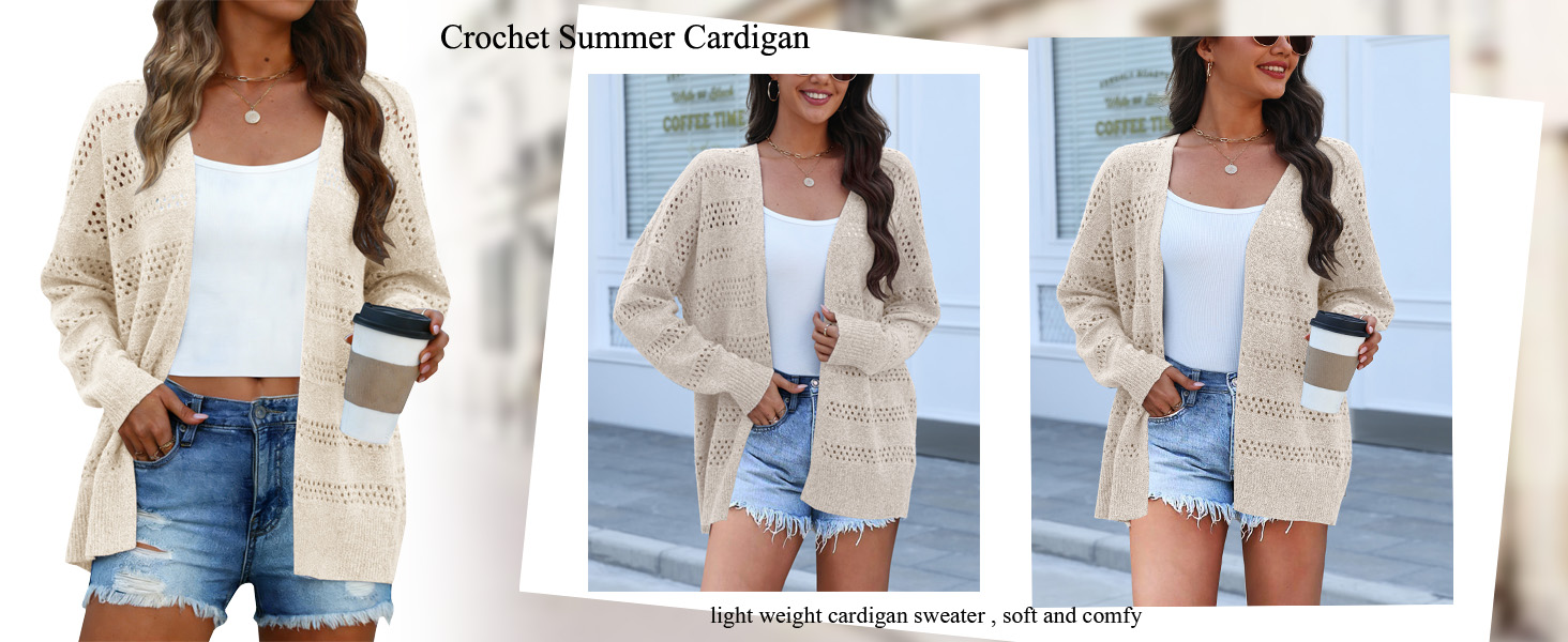 مطابقة: سترات كروشيه للنساء أزياء الصيف، كاجوال وعصري، سترة طويلة أنيقة، سهلة الارتداء مع الجينز، والتيشيرت الأساسي، والفساتين، والسراويل الضيقة