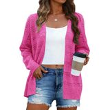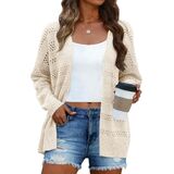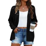 سترة نسائية من الكروشيه خفيفة الوزن ورقيقة وأكمام طويلة مفتوحة من الأمام بلون سادة كيمونو بالأزرار سترة خفيفة