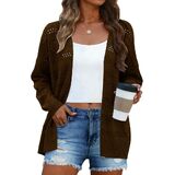 سترة كروشيه صيفية خفيفة الوزن؛ سترة طويلة الأكمام؛ سترة كروشيه نسائية لفصل الربيع ؛ سترة كيمونو أساسية بلون سادة؛ سترة صوفية متماسكة رفيعة وخفيفة الوزن مفتوحة من الأمام؛ سترة بطول سترة؛ سترة أنيقة لطيف؛ ملابس خريفية كاجوال خفيفة الوزن