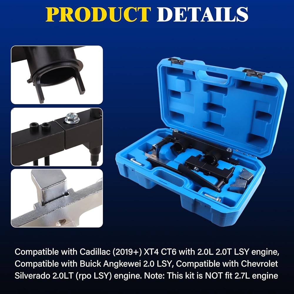 Engine Timing Tool Kit:This camshaft locking tool and timing tool kit is engineered for a perfect fit on GM 2.0L LSY and 2.7L L3B engines. It is specifically designed for models like the Buick Envision, Cadillac XT4, and Chevrolet Silverado/Sierra. Directly replaces OEM parts EN-52461, EN-52476, EN-52462, and 27609-01B, ensuring professional-grade accuracy for timing chain and cam phaser locking service.