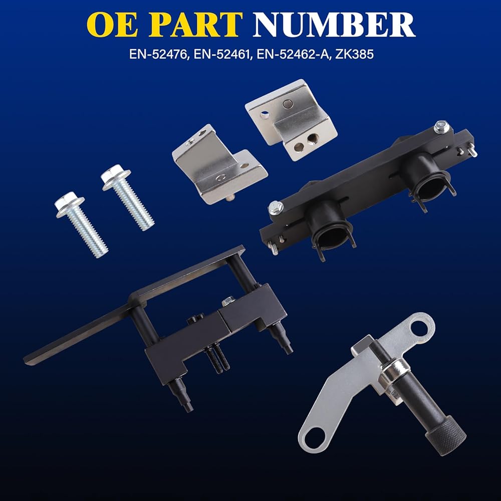 Complete Camshaft & Flywheel Locking Tool Set:The kit functions as a comprehensive engine timing chain retainer tool set. It includes the EN-52461 camshaft torque reaction tool, the EN-52462-A camshaft alignment tool, and the EN-52476 flywheel locking tool. This set provides all timing chain tools needed to securely lock the camshafts and crankshaft, facilitating the safe removal of variable valve timing actuators and ensuring correct engine timing.