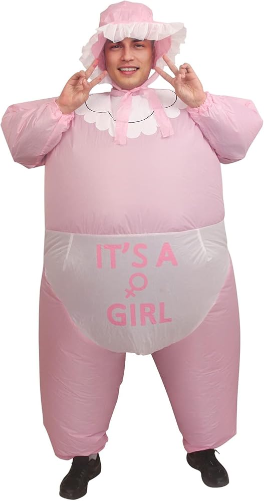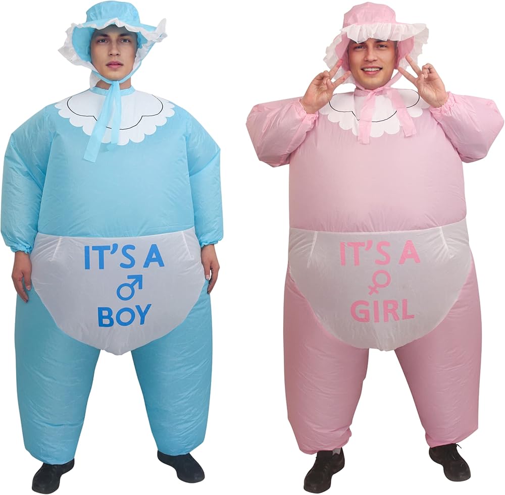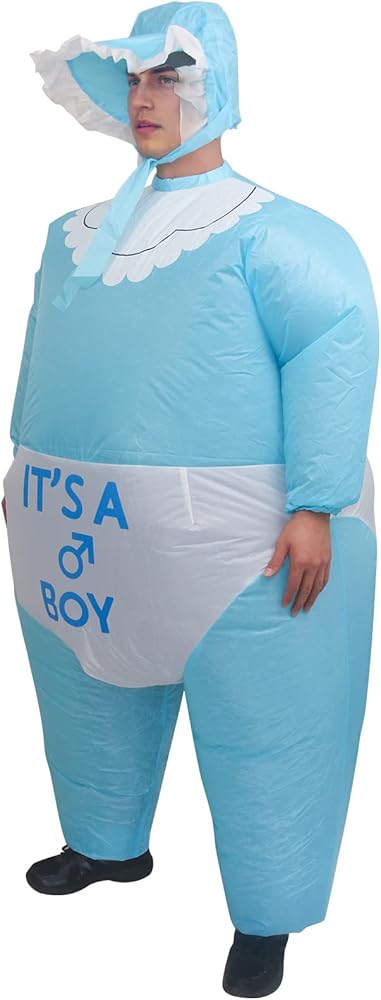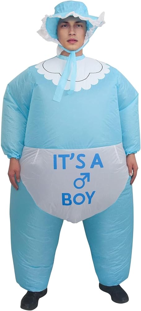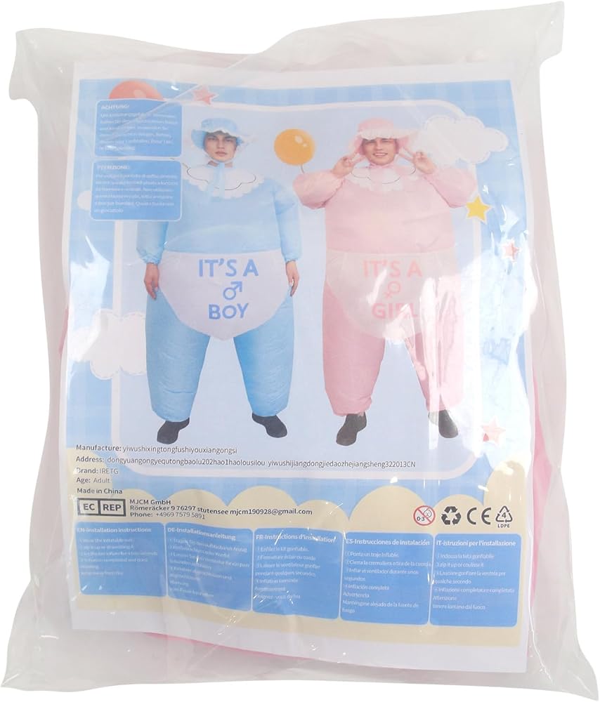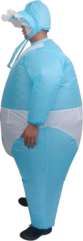 • Versatile Event Costume Designed for various occasions such as gender reveal parties, Halloween, and bachelor gatherings. This giant inflatable baby suit creates a distinct visual impact suitable for social media photos and videos. It serves as a unique outfit option for family announcements and costume events.