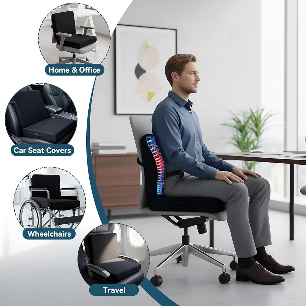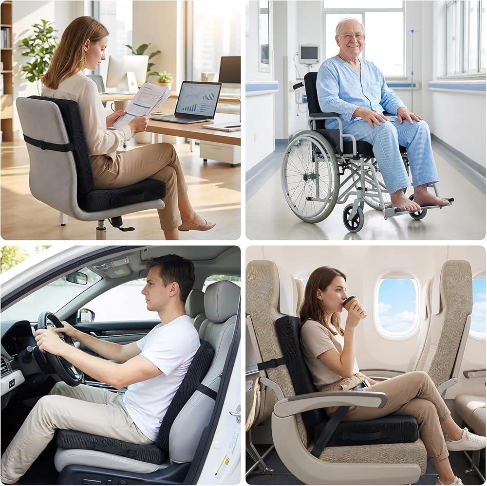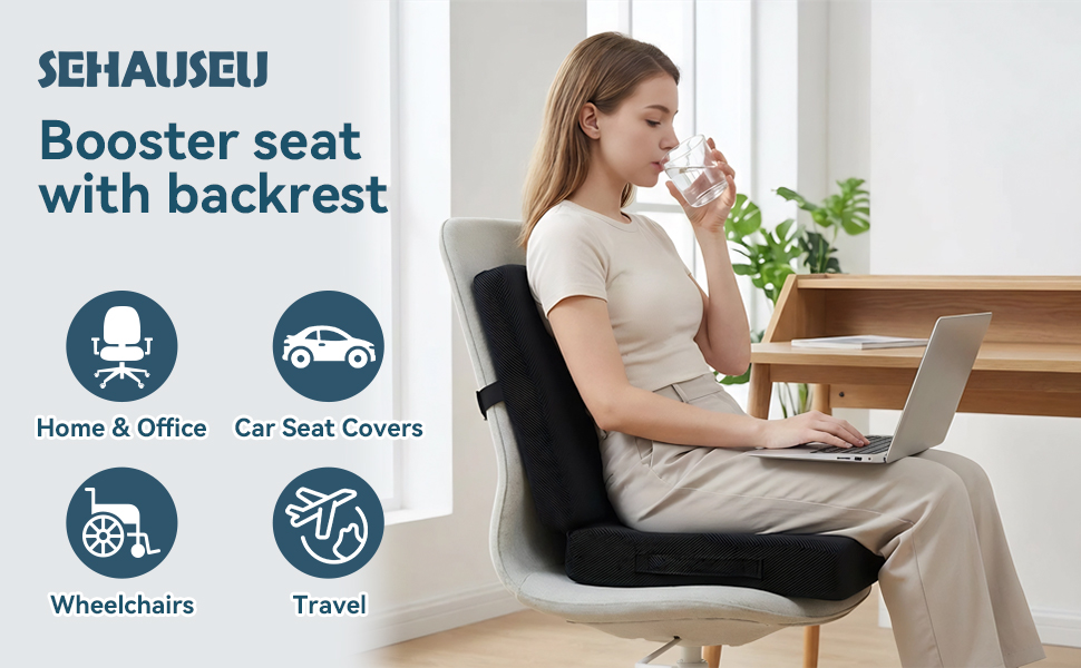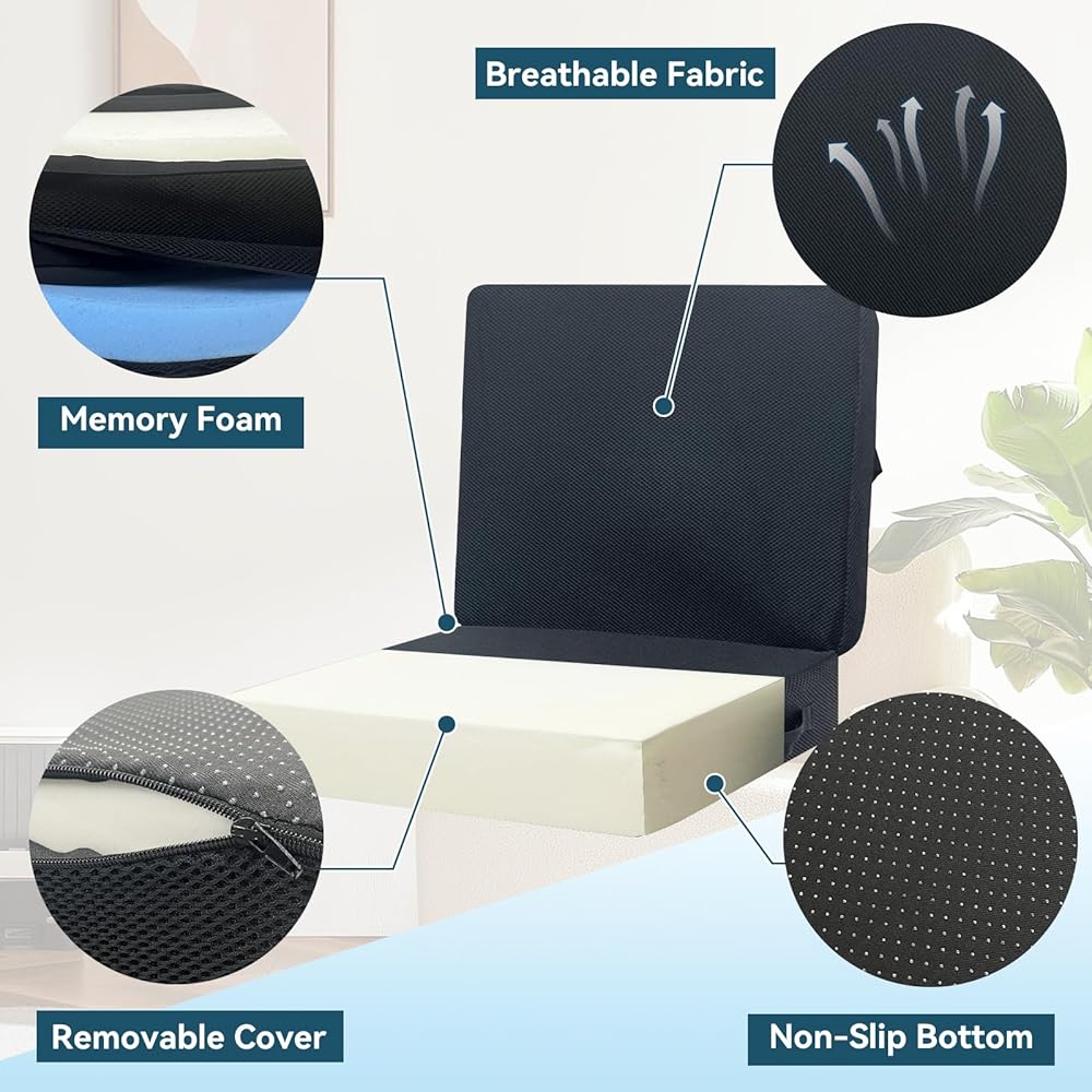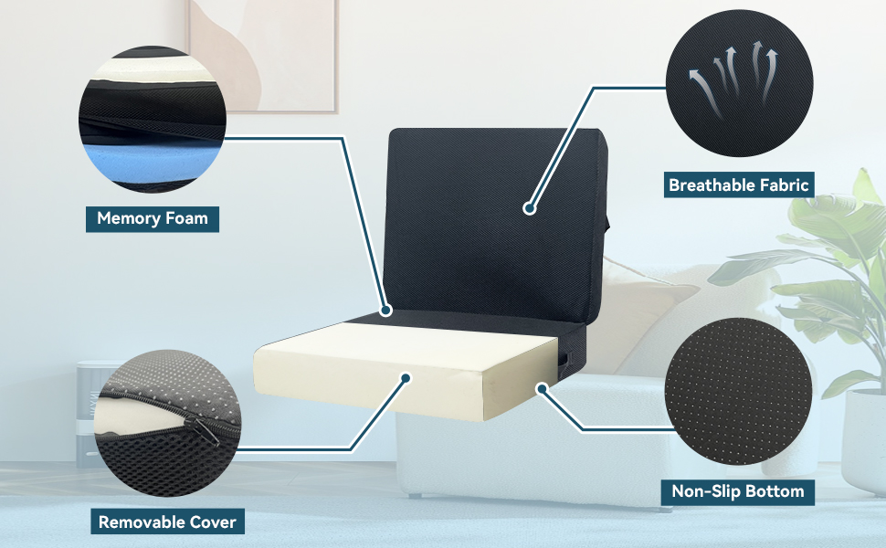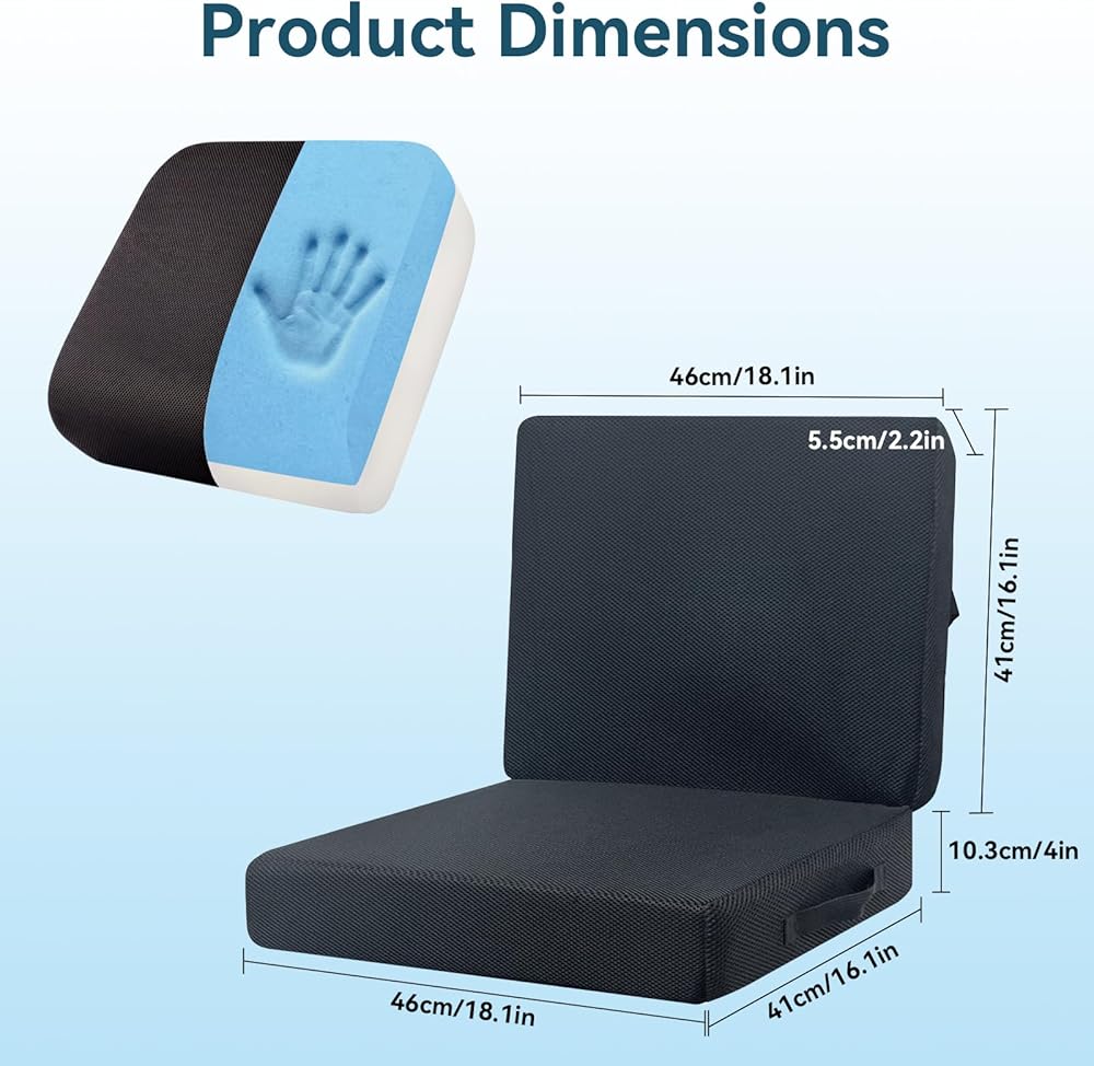 【وسادة مقعد سميكة】يوفر هذا المقعد السميك مقاس 18.1 × 16.1 × 6.2 بوصة دعمًا مزدوجًا، ولا يعمل فقط كوسادة لتعزيز الارتفاع ولكن يتميز أيضًا بمسند ظهر متكامل. يعالج في الوقت نفسه مشكلات الارتفاع غير الكافي ونقص دعم أسفل الظهر، مما يوفر الدعم الكامل من الوركين إلى الخصر