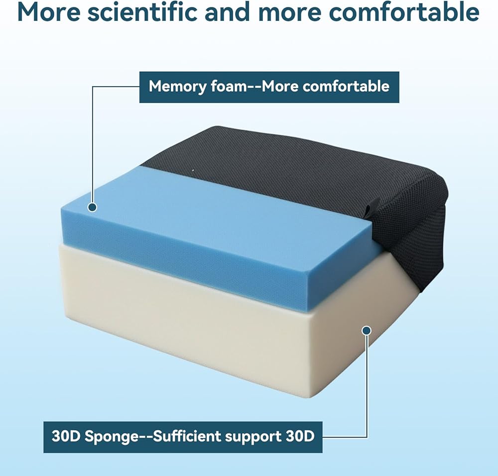【إسفنج الذاكرة وبطانة إسفنجية】تتميز الوسادة السميكة بإسفنج الذاكرة في الطبقة العليا وبطانة إسفنجية في الطبقة السفلية، مما يوفر دعمًا ممتازًا مع ضمان الراحة. الوسادة السميكة 6.2 بوصة مناسبة تمامًا كوسادة لتعزيز ارتفاع البالغين، مما يقلل بشكل فعال من الضغط على الخصر والوركين والساقين للحفاظ على الراحة أثناء ساعات العمل الطويلة.