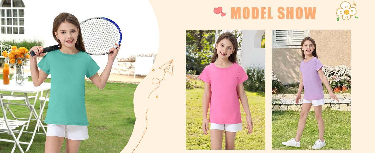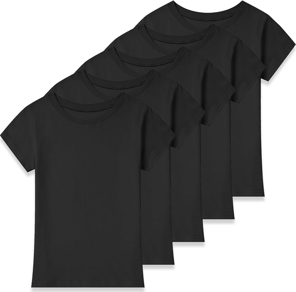 مجموعة من 5 تي شيرتات للفتيات الصغار قطن بأكمام قصيرة قمصان صيفية أساسية للمراهقين (2T-14Y) in Kuwait