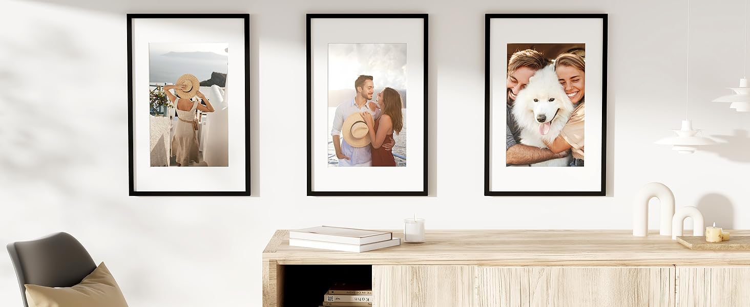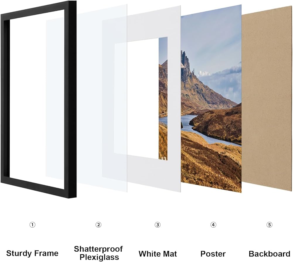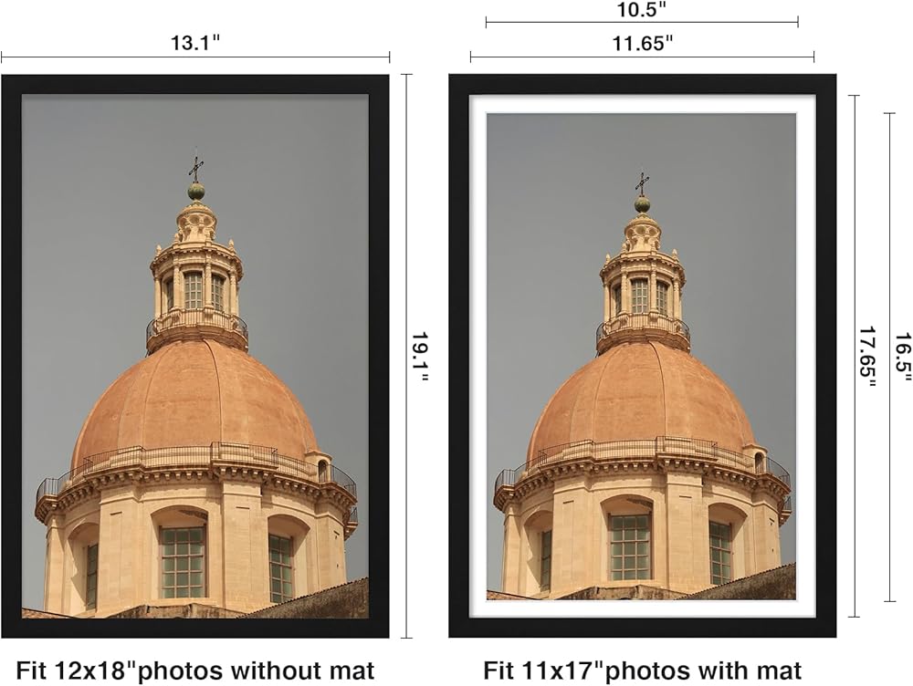 تصميم متعدد الاستخدامات: يستوعب هذا الإطار الأسود صورًا مقاس 11x17 مع حصيرة أو 12x18 بدون حصيرة. تم تقليل السجادة قليلاً بمقدار 0.5 بوصة للحفاظ على الصور في مكانها. مناسب للعرض الأفقي والرأسي، فهو يكمل أنماط الديكور المختلفة