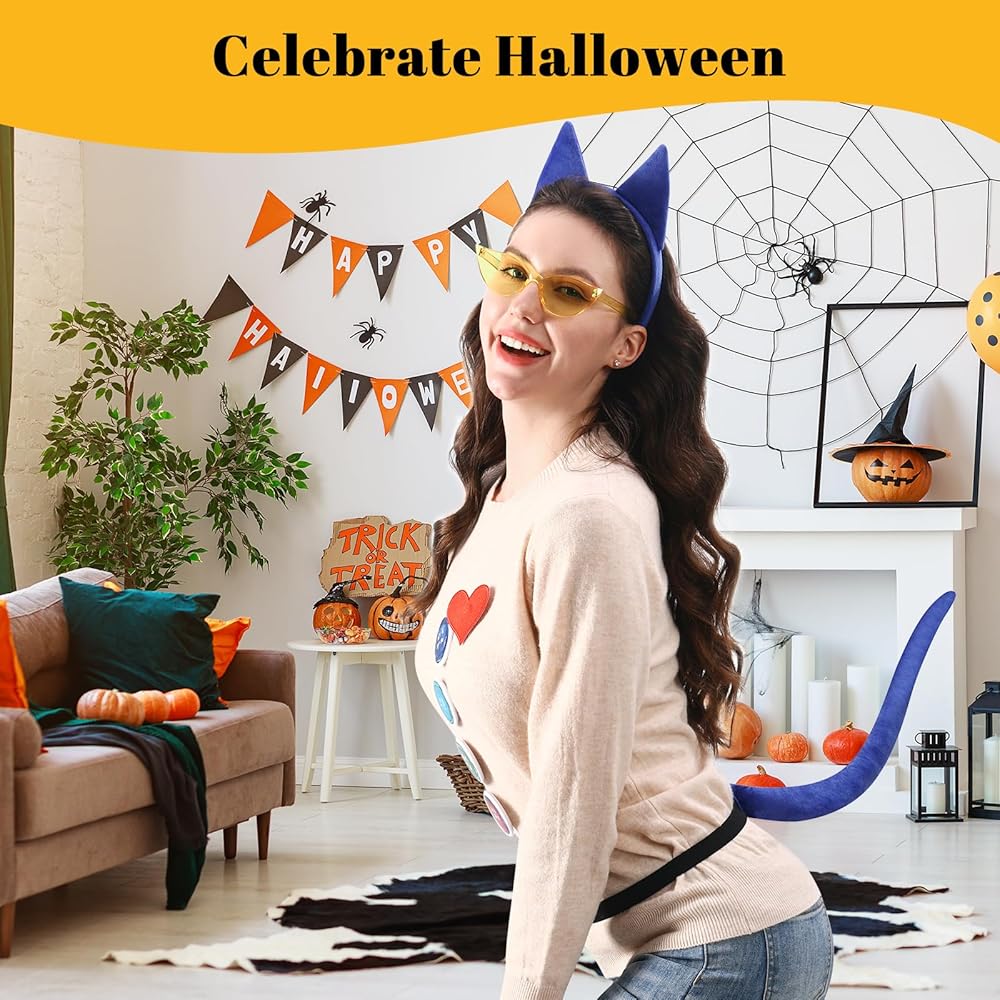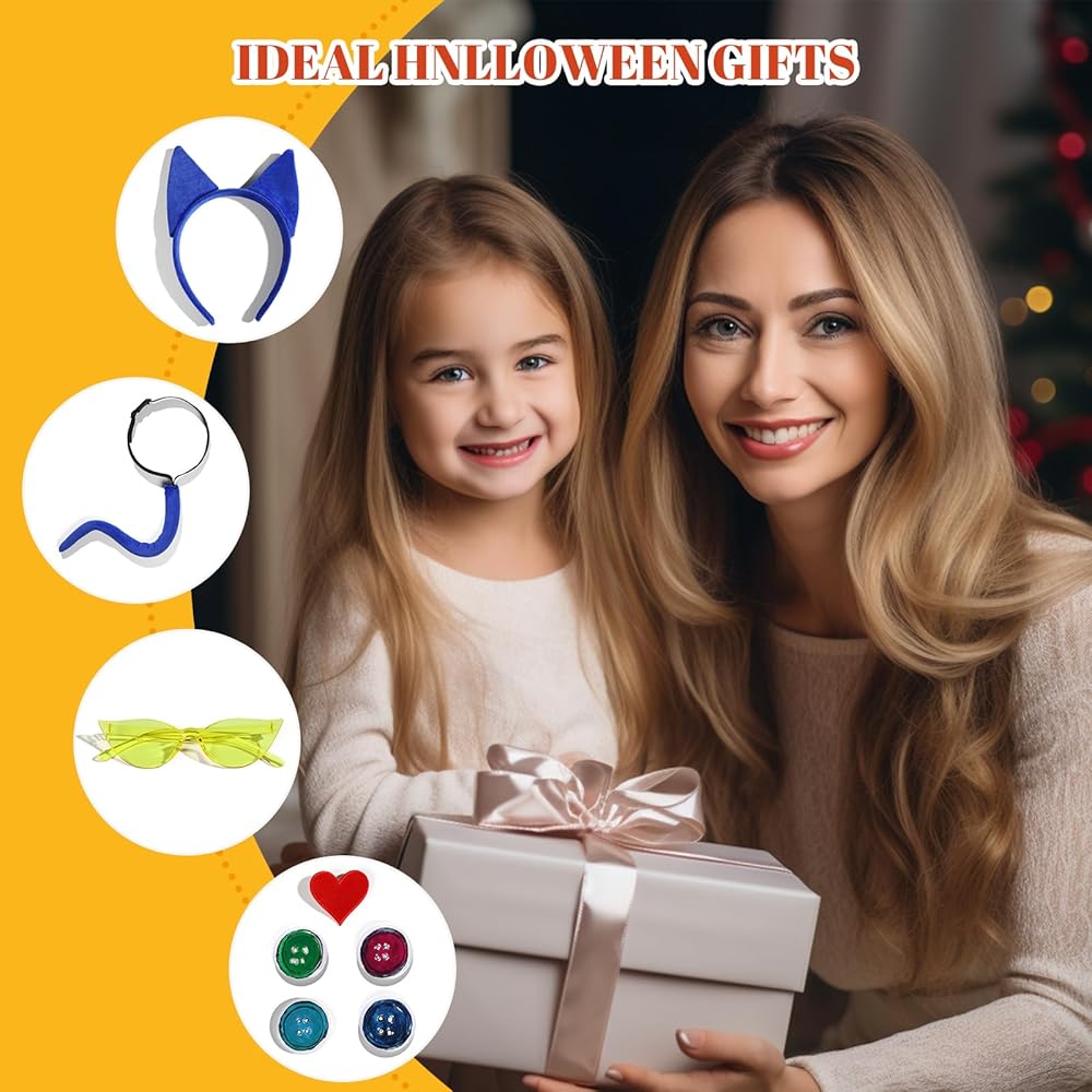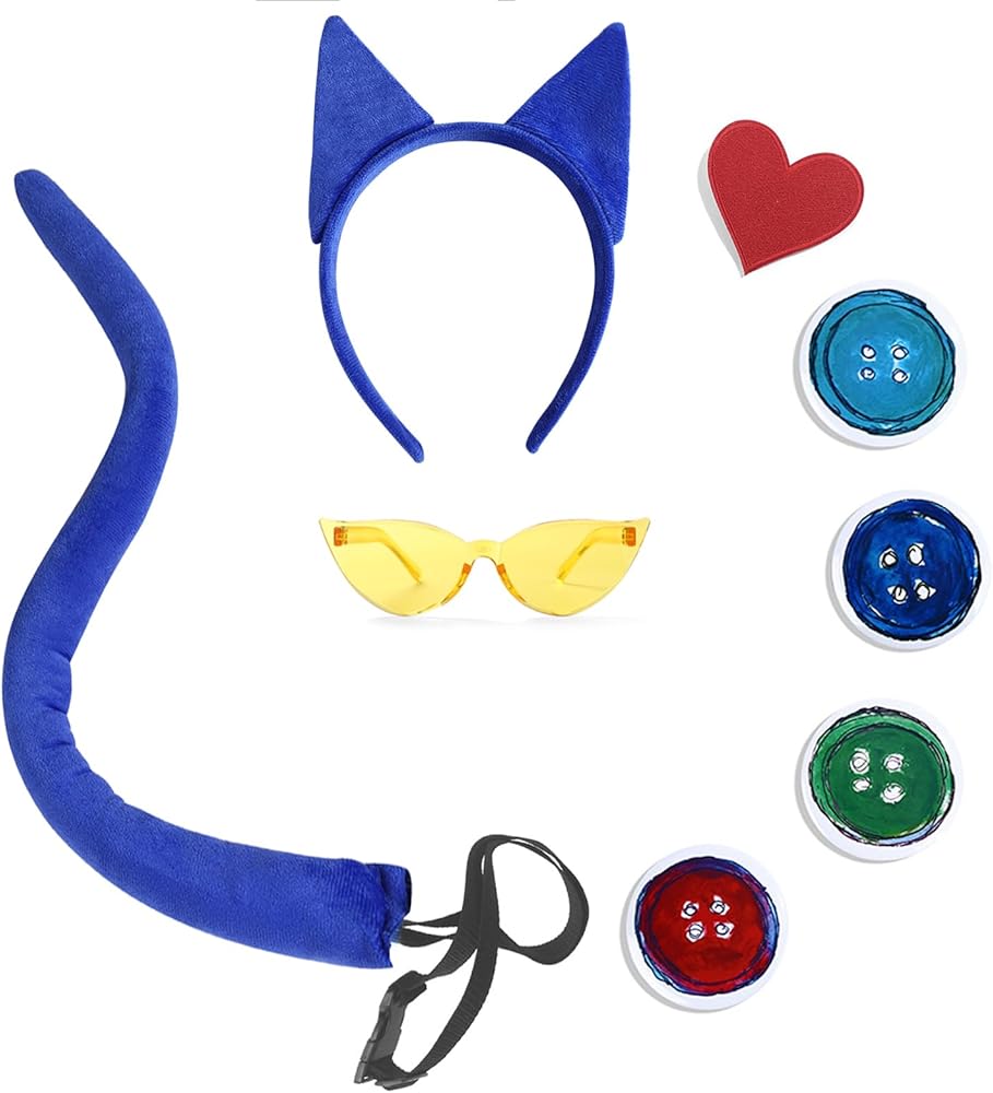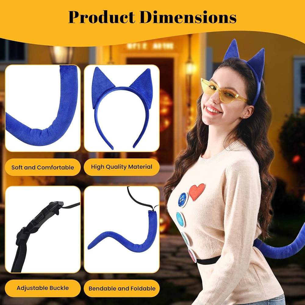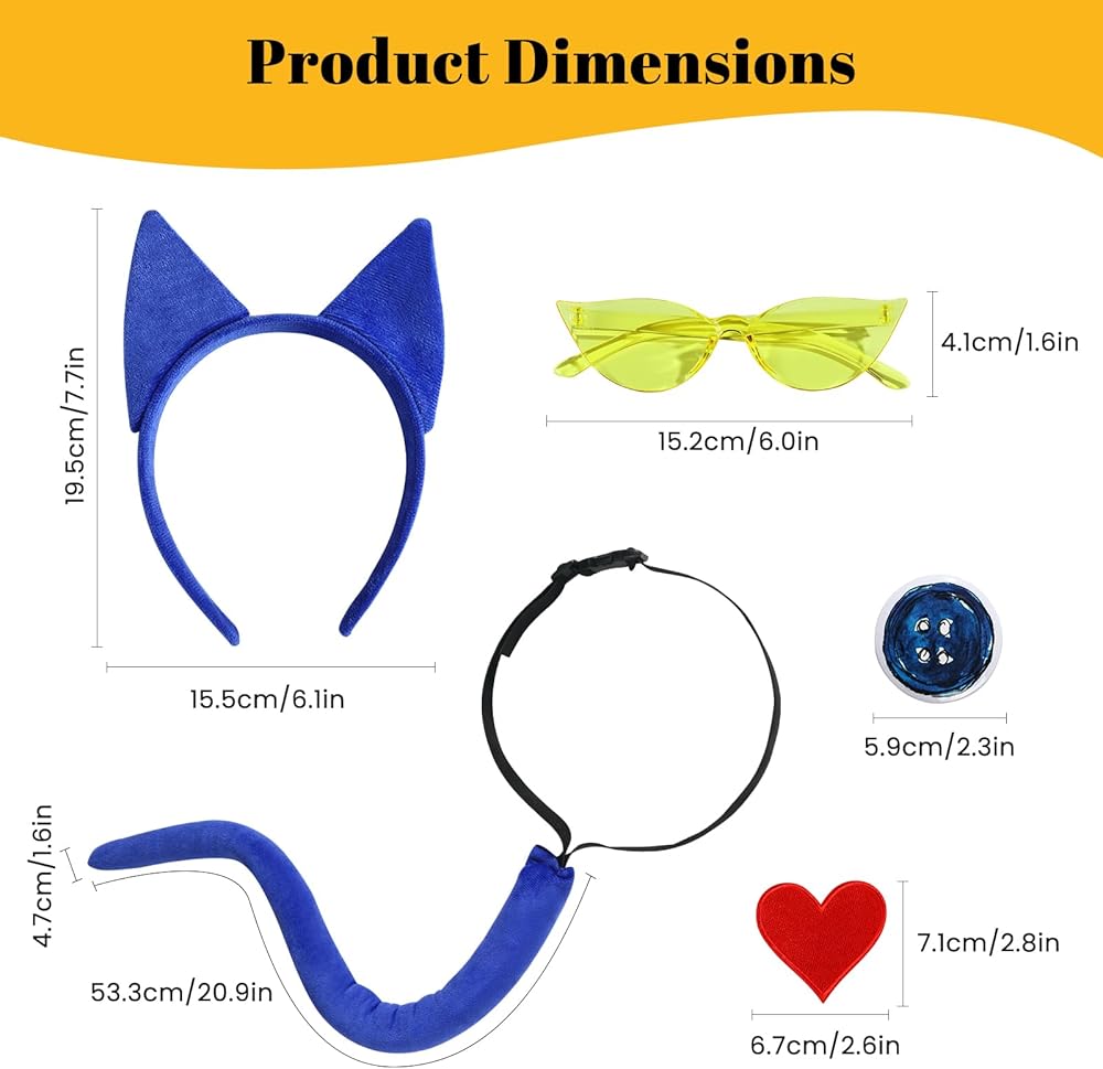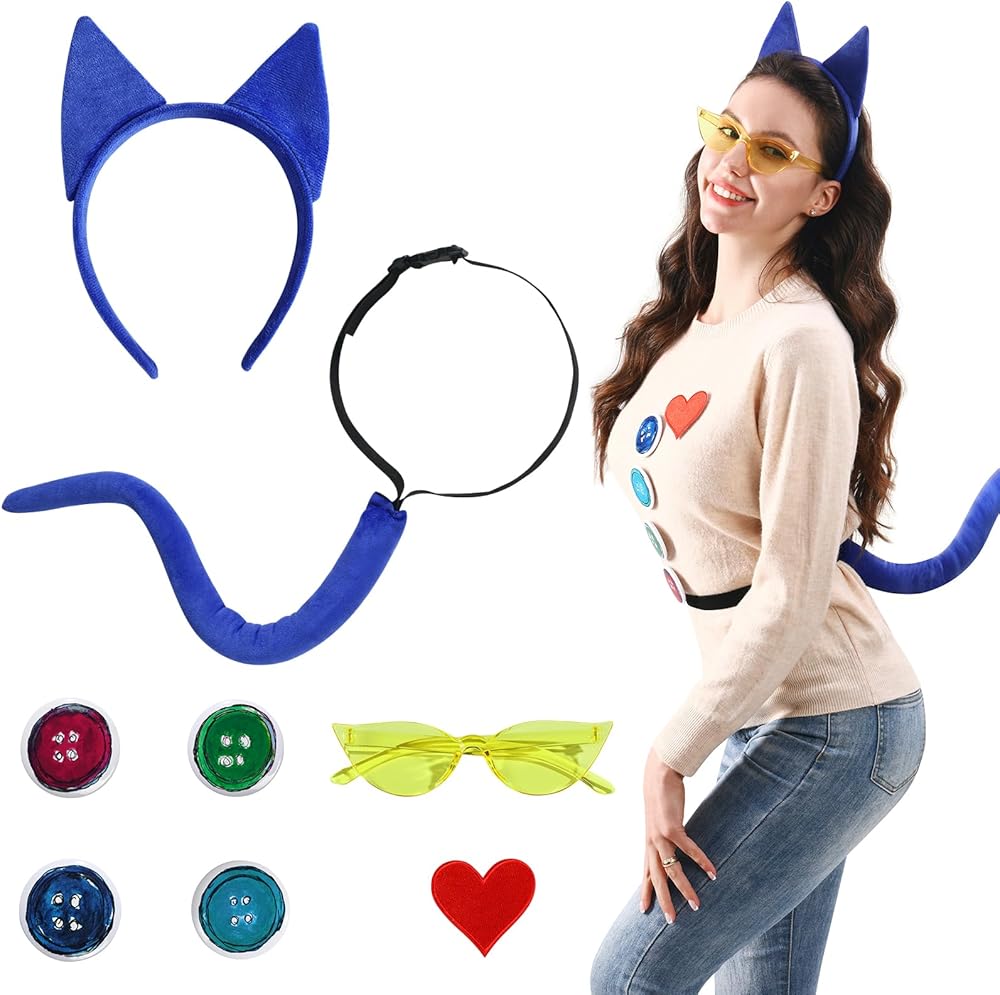 Realistic Cosplay styling: The Blue Cat Costume Set includes a headband with ears, a 21.65-inch tail, four large 3.2-inch buttons, yellow glasses, and a red heart with buckles. The detailed Blue Cat costume set makes it easy to create a life-like cat Cosplay, perfect for book day, Halloween, or themed parties.