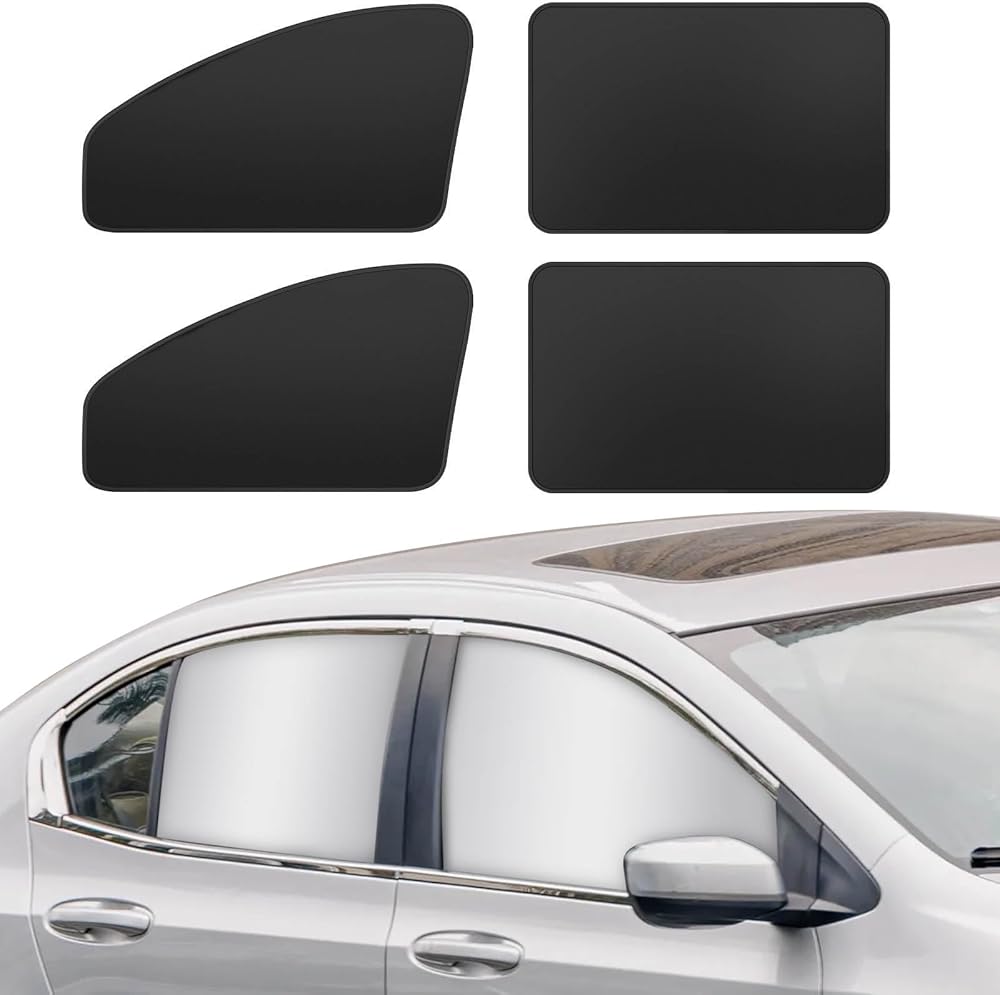 مظلة شمسية لنافذة السيارة باللون الفضي - ستارة جانبية سميكة مغناطيسية 100% تغطي نوافذ السيارة الخفيفة مع شعور بالبرودة (فضي، D-4 قطع)