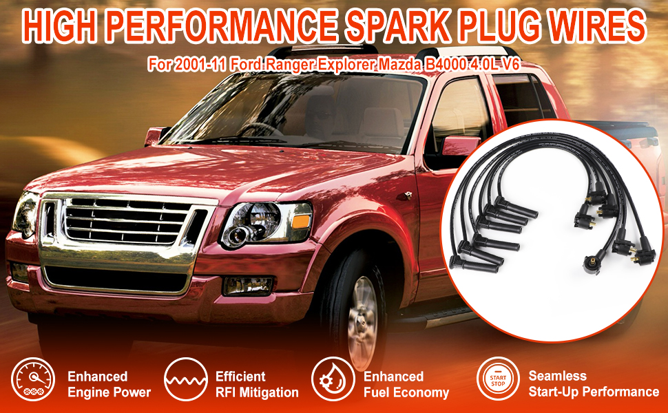 مجموعة أسلاك توصيل الإشعال 8 مللي متر لـ Explorer Ranger B4000 4.0L V6 2001-2005/لفورد رينجر 2001-2011 D-ST-6114