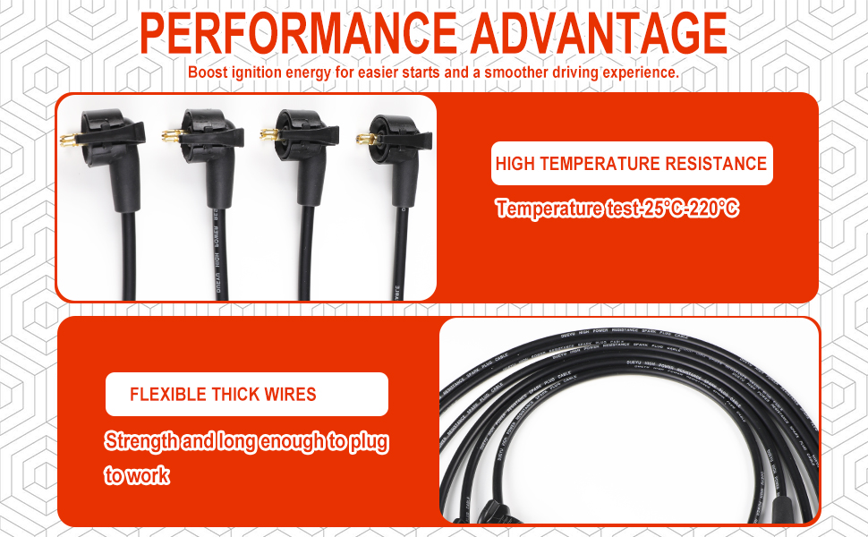 • مواد فاخرة من أجل المتانة تتميز بقلب نحاسي ملفوف حلزونيًا، وسترة سيليكون عالية الحرارة، ومقاومة منخفضة لنقل الطاقة.