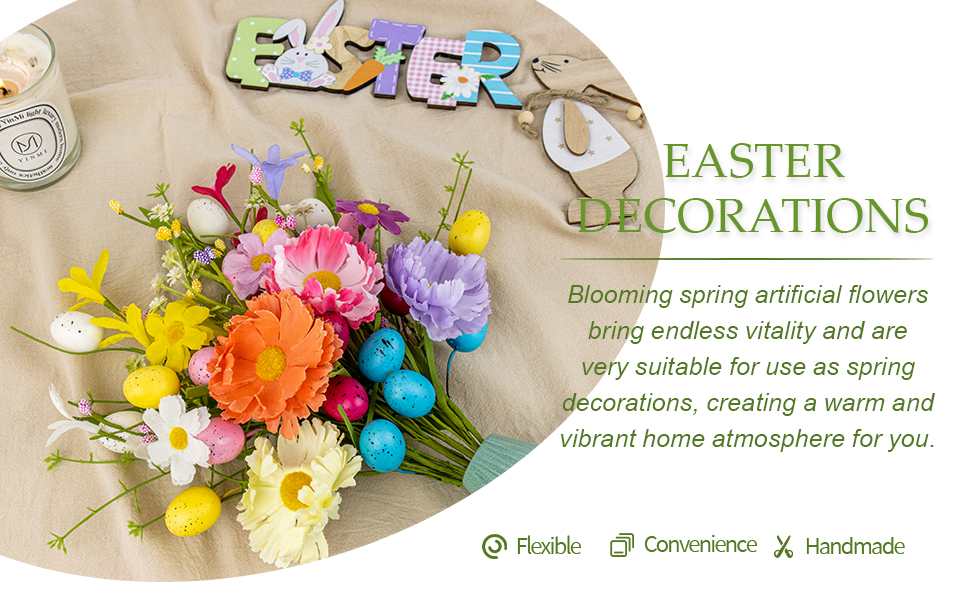 【الاسترخاء في فصل الربيع وسط الزحام】: لا تتطلب أعواد عيد الفصح المصنوعة يدويًا أيًا من تغييرات المياه اليومية أو التقليم اللازم للزهور الطازجة. ما عليك سوى فرد أي سيقان منحنية عند وصولها ثم نفث الأزهار بلطف لإبقائها في حالة ازدهار دائم - مما يجعلها الخيار الزخرفي الأمثل لأنماط الحياة المزدحمة.