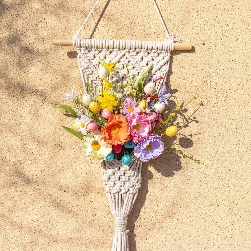 【سحر طبيعي】: بينما يحمل نسيم الربيع رائحة عيد الفصح الجميلة إلى الشرفة، تصبح سيقان الزهور الربيعية هذه على الفور النقطة المحورية - الأقحوان المتمايلة في إزهار كامل، والبيض الملون بالماكرون الذي يعشش بين فروع فورسيثيا. للوهلة الأولى، تجعلك تتوقف وتملأ المساحة بالروح المبهجة لاحتفالات الربيع.