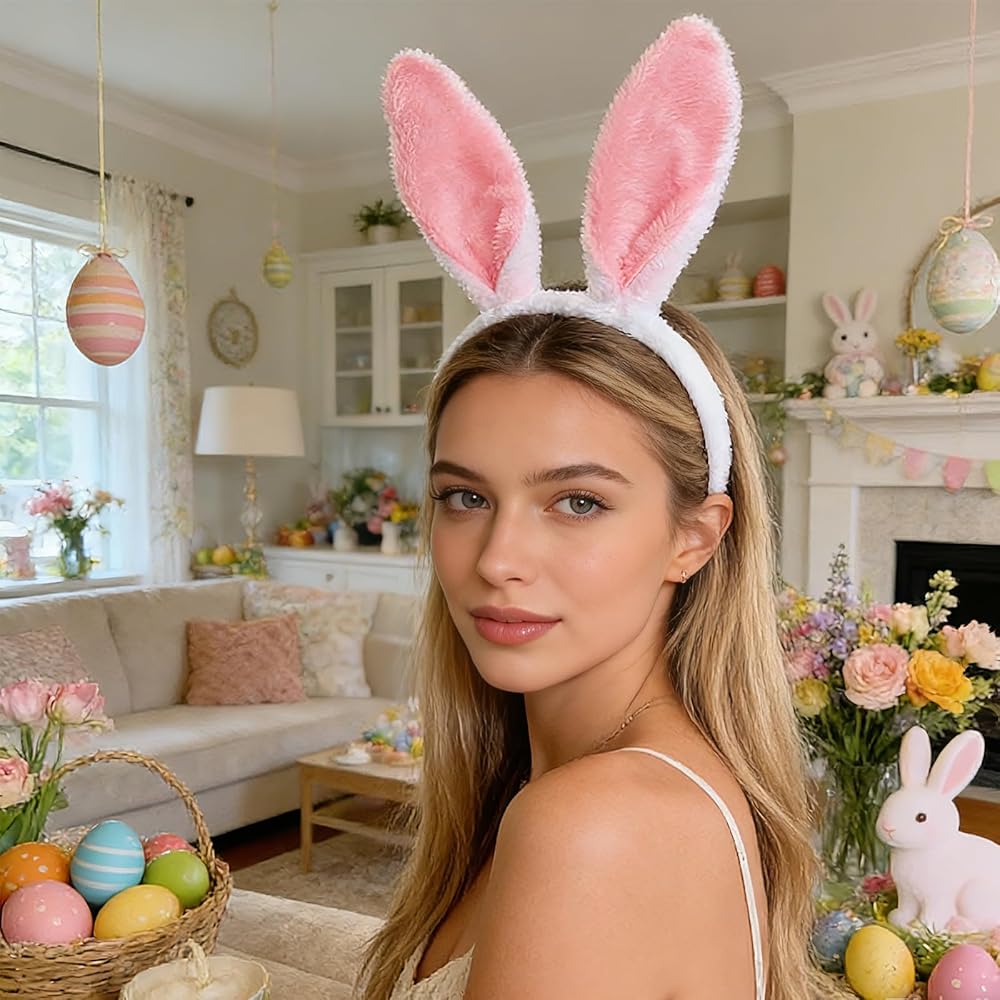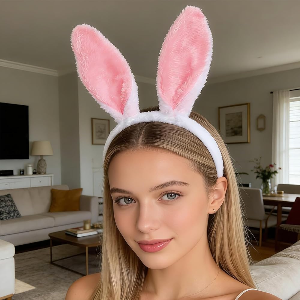 هدية جميلة: عصابة رأس على شكل أذن أرنب مع بطانة بيضاء ووردية ستجعلك مميزًا في عيد الفصح والهالوين. هذا التصميم الجميل مثالي لأي حفلة.