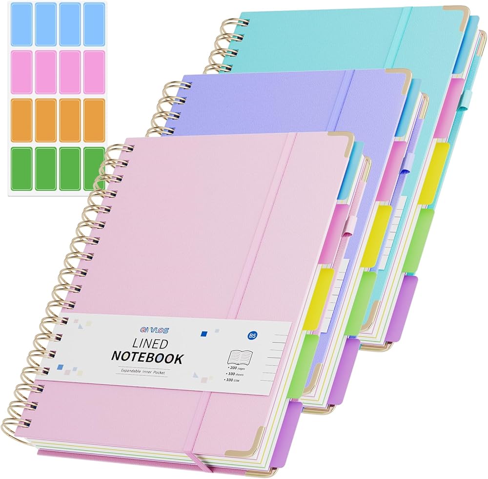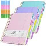 3 Packs Hardcover Spiral Notebook, B5 Journal with Removable Dividers Tabs, 5 Subject Notebook College Ruled, 200 Pages 8"x10" Leather Notebooks for Work School Study, Lined Journal for Women