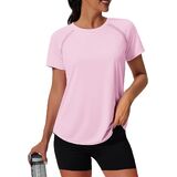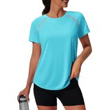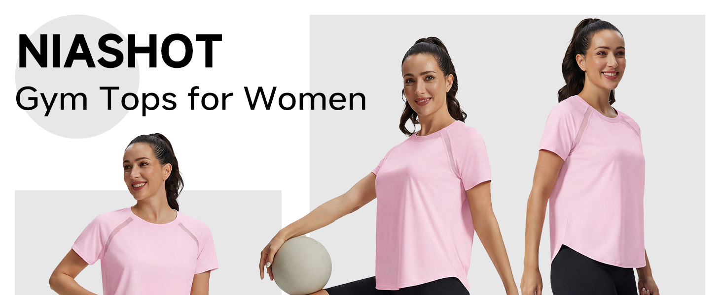 قمصان NIASHOT النسائية للتمرين بأكمام قصيرة، ملابس يوجا بيلاتيس، قمصان رياضية للجري والجري للحماية من الأشعة فوق البنفسجية مع شبكة in Kuwait