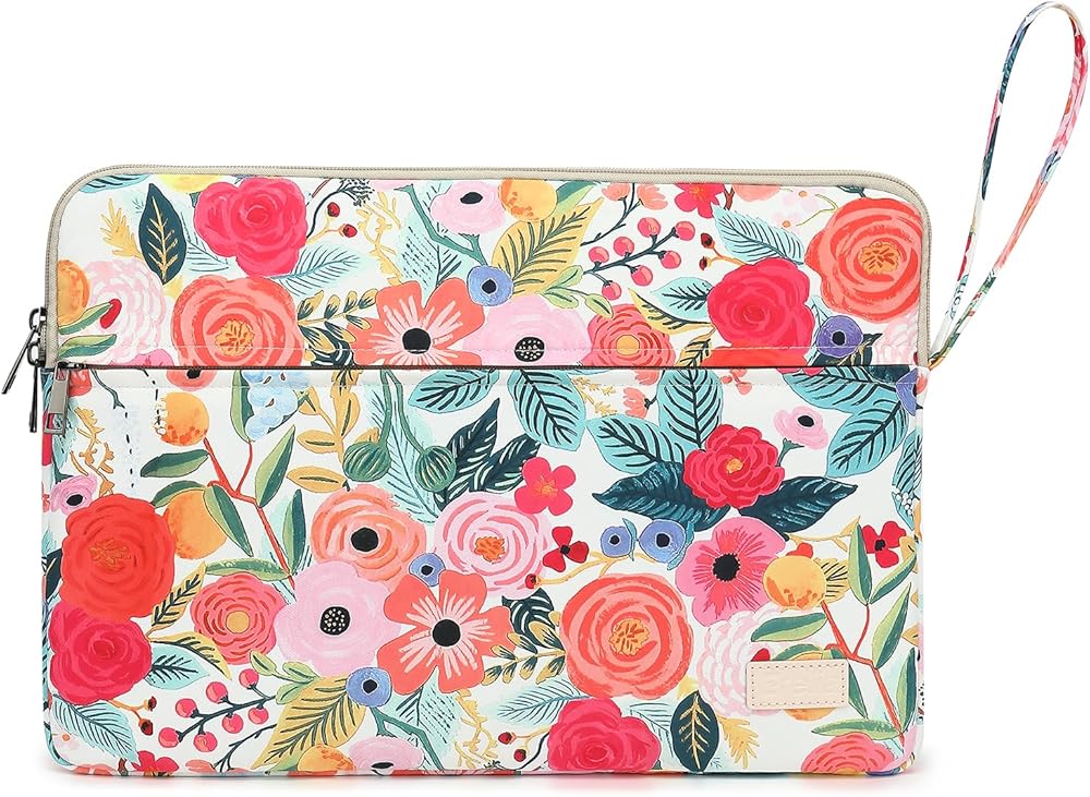 Add a splash of vibrant style to your tech accessories with this beautifully designed laptop sleeve from DACHEE. The eye-catching floral pattern features a stunning array of coral, pink, and red roses complemented by blue blooms and lush green foliage against a crisp white background. The sleeve's slim profile makes it perfect for sliding into a larger bag or carrying on its own. Transform your daily commute or workspace with this fashionable and functional laptop accessory that combines practical protection with artistic flair.