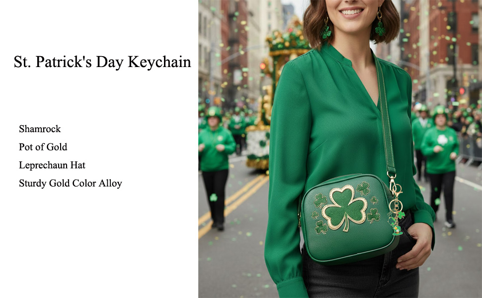 • سلسلة مفاتيح على شكل حقيبة: خيار مثالي للأصدقاء أو العائلة أو زملاء العمل. إنه مثالي لاستعراضات عيد القديس باتريك، والحفلات ذات الطابع الأيرلندي وهدايا الحفلات الخضراء.