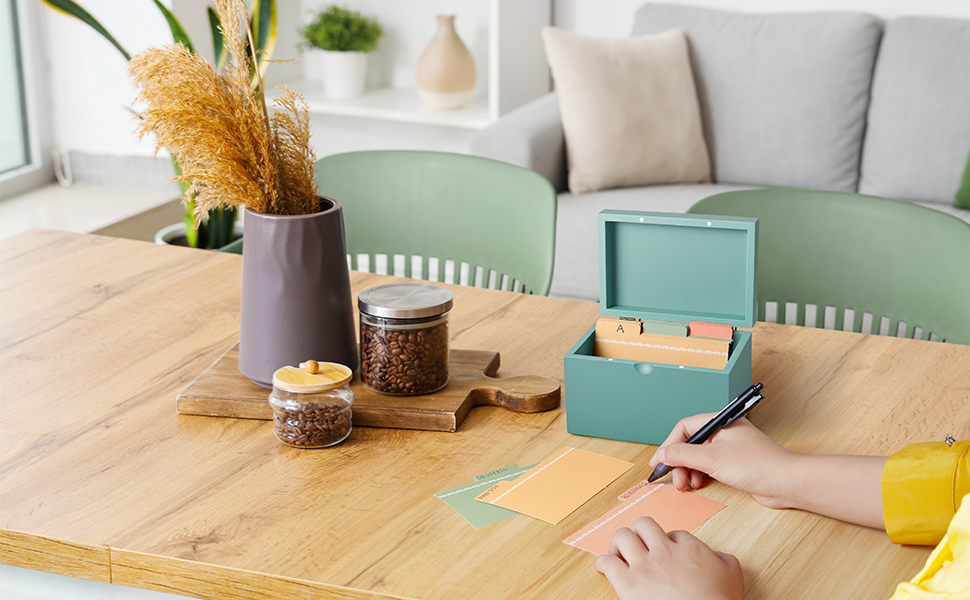 • تطبيق واسع: يحتوي صندوق بطاقات الفهرس على عدد لا نهائي من الوظائف التي يمكن استخدامه من أجلها، من الوصفات إلى المواضيع التي تهتم بها. رائع لتنظيم بطاقات الفهرس، وبطاقات الصلاة، وبطاقات الوصفات، والفواتير، والعناوين، وكتابة الملاحظات، والبطاقات التعليمية، وردود الزفاف، وما إلى ذلك.