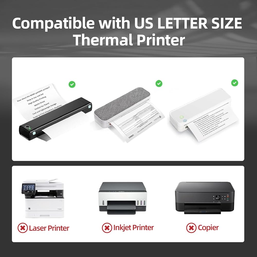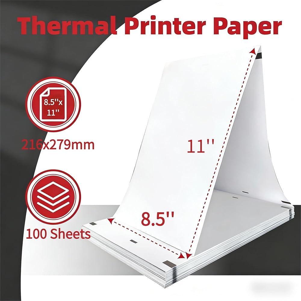 يحتوي كل صندوق على 100 ورقة، بقياس كل ورقة 8.5 بوصة × 11 بوصة (216 مم × 279.4 مم).