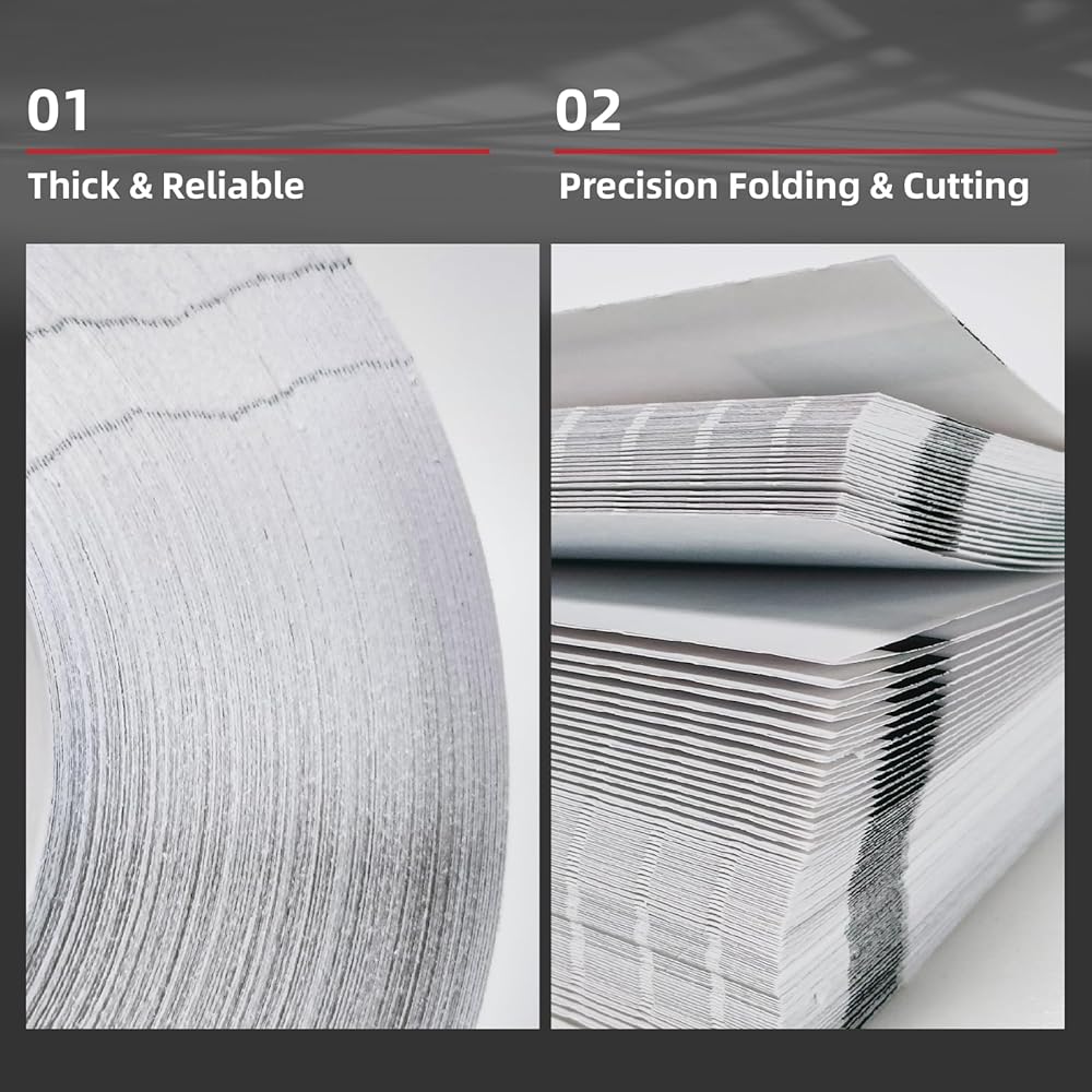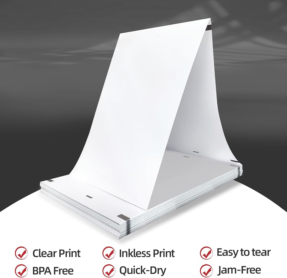 الورق الحراري المطوي مناسب لمعظم الطابعات الحرارية، دون الحاجة إلى شريط كربوني، جاهز للاستخدام، مما يقلل من تكاليف الاستخدام ويجعل التشغيل بسيطًا.