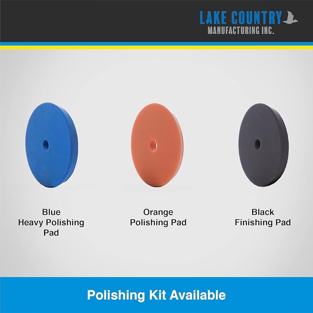 Lake Country Foam Car Compounding Pad: Our blue buffing polishing pads are designed to polish your car's surface easily and efficiently, removing scratches, swirls, and imperfections. The foam buffing pads are compatible with random orbital polishers which measures 8mm, 12mm, 15mm, and 21mm. The buffer polisher pads have a tapered edge for easy centering and precise polishing with a central cooling chamber for prolonged sessions. This makes the foam buffing pad cleaner tool pack durable and long-lasting, as well as gentle on your car's surface. This orbital foam buffing pad helps in making a great wax applicator pad when you polish and wash your car. This pad measures 7/8” thick and fits standard-size backing plates to create a high-quality auto finish. These micro polishing pads also have a hook and loop system that allows you to attach and detach them easily from your polisher. The hook and loop system of car detailing polisher also helps to backings o securely attach to your preferred car waxing machine. These car buffing pads for drill have a central cooling chamber to block heat transfer from the center of the pad to increase durability. The drill pads for car polishing by Lake Country come in different sizes and shapes to suit your needs. This foam buffing pad for drill pack is compatible with most polishers and can be used with any polishing compound or wax. --- About Us: Lake Country Manufacturing is a privately owned manufacturer of buffing and polishing products for the industrial; paint, body, and equipment (PBE); detailing, and consumer markets. We strive to find profitable solutions for our worldwide network of distribution partners by developing proprietary products and customized buffing systems.