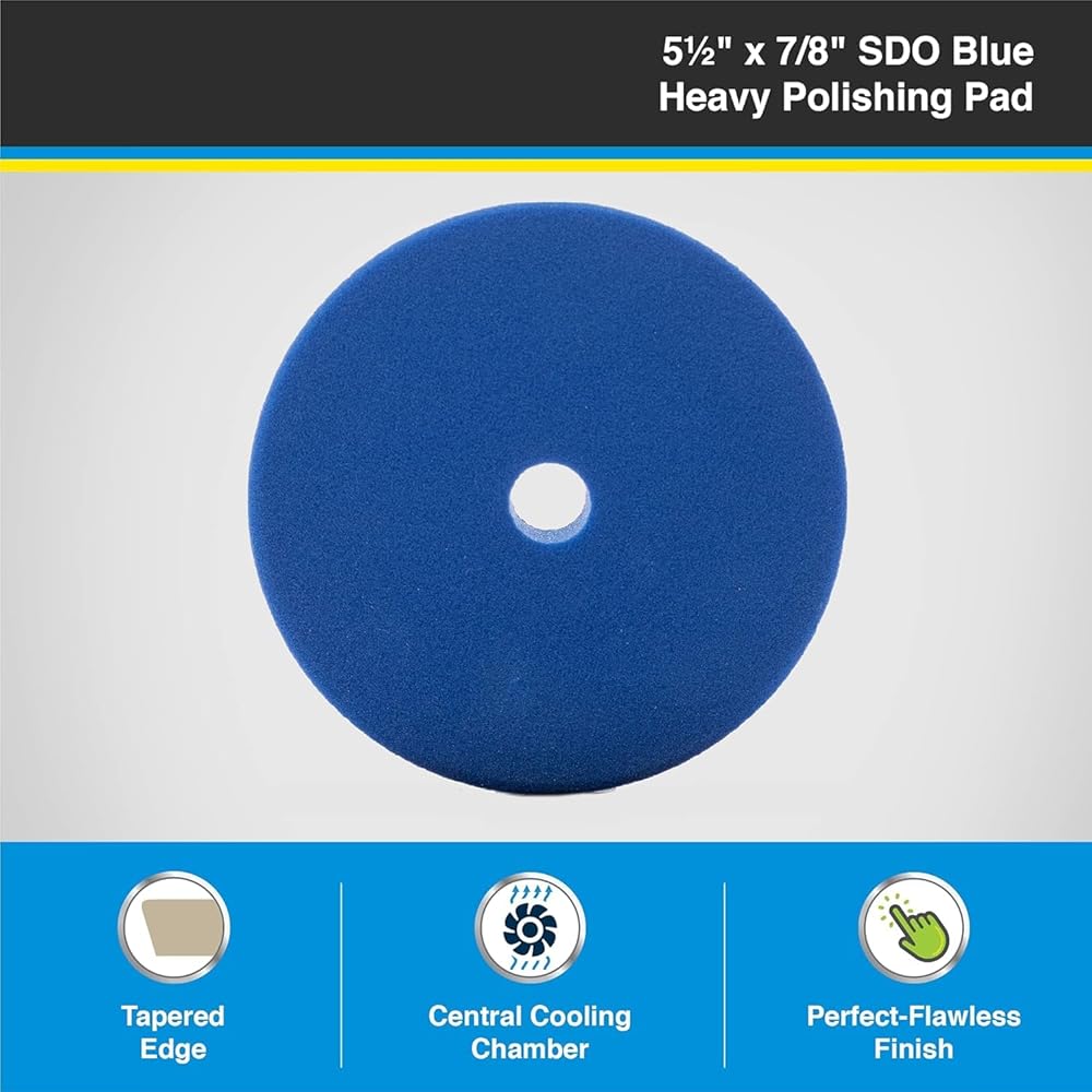 SDO Blue Pad: This heavy polishing pad is best used with medium to heavy cut compounds to remove moderate to heavy defects or for harder paint surfaces. Our blue foam offers great cut for correcting moderate scratches ands scuffs, etchings, and everyday swirl marks with ease.