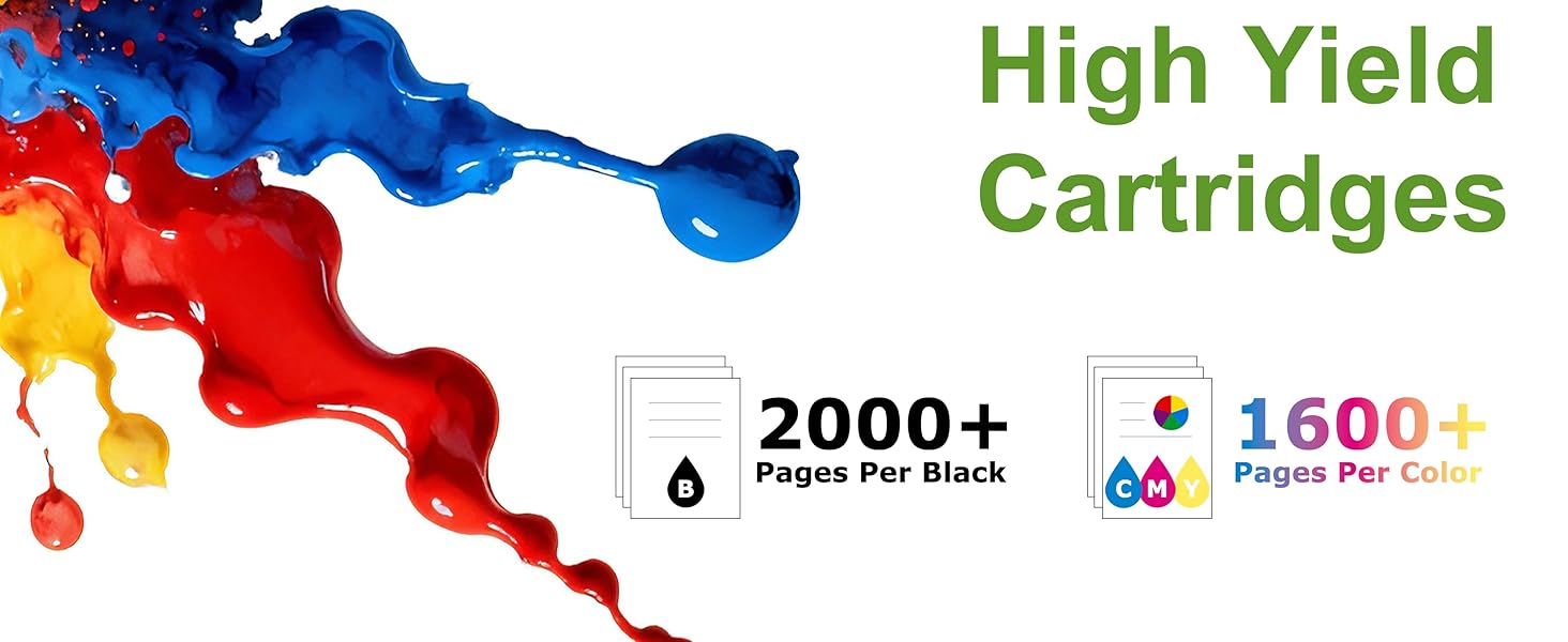 • إنتاجية عالية للصفحات: يمكن لخرطوشة الحبر الأسود 962 XL طباعة ما يصل إلى 2000 صفحة، ويمكن لخراطيش الحبر الملونة 962 XL طباعة 1600 صفحة لتلبية احتياجات الطباعة عالية التردد. (على أساس معدل تغطية 5%)