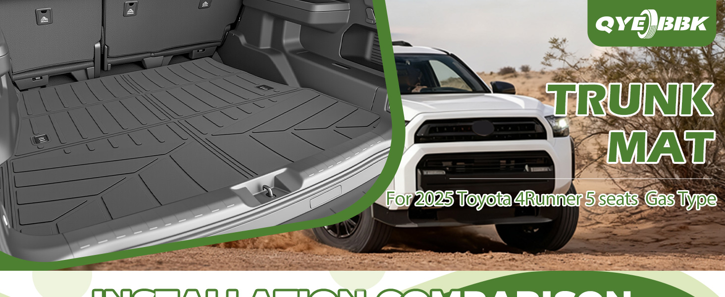 • ملاءمة مخصصة: سجادة صندوق السيارة Qyebbk مناسبة لإصدار الغاز 2025 2026 Toyota 4Runner 5 مقاعد (ليست لسيارة Hybrid EV & i-Force MAX، لا تناسب 7 مقاعد)