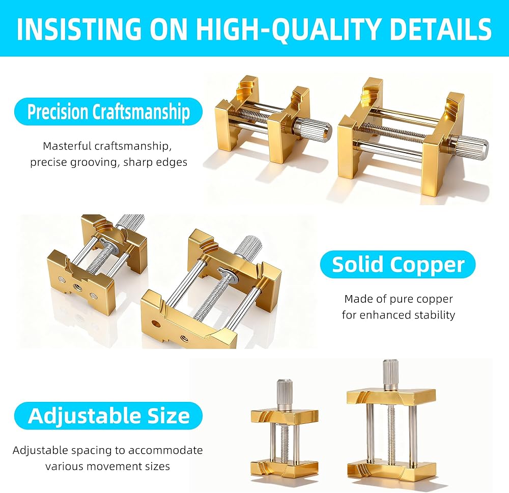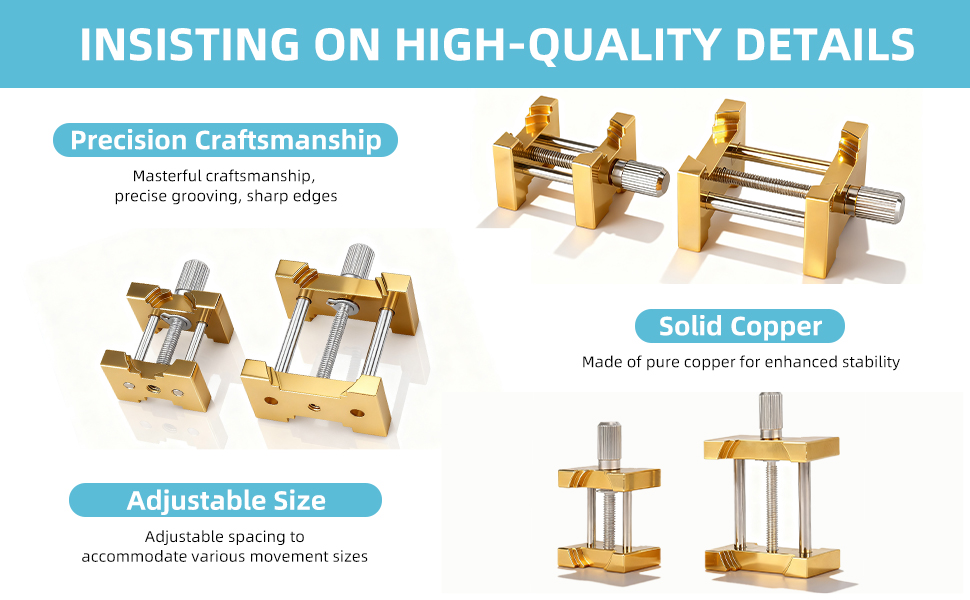【تصميم يركز على الإنسان】: القاعدة مصنوعة من النحاس الصلب لمتانة استثنائية، مع وزن وسمك إضافيين لضمان ثبات معزز. تم تصميمها كأداة احترافية لصيانة الساعات، فهي تتميز بالقوة العالية والصلابة العالية ومقاومة التآكل الكيميائي.