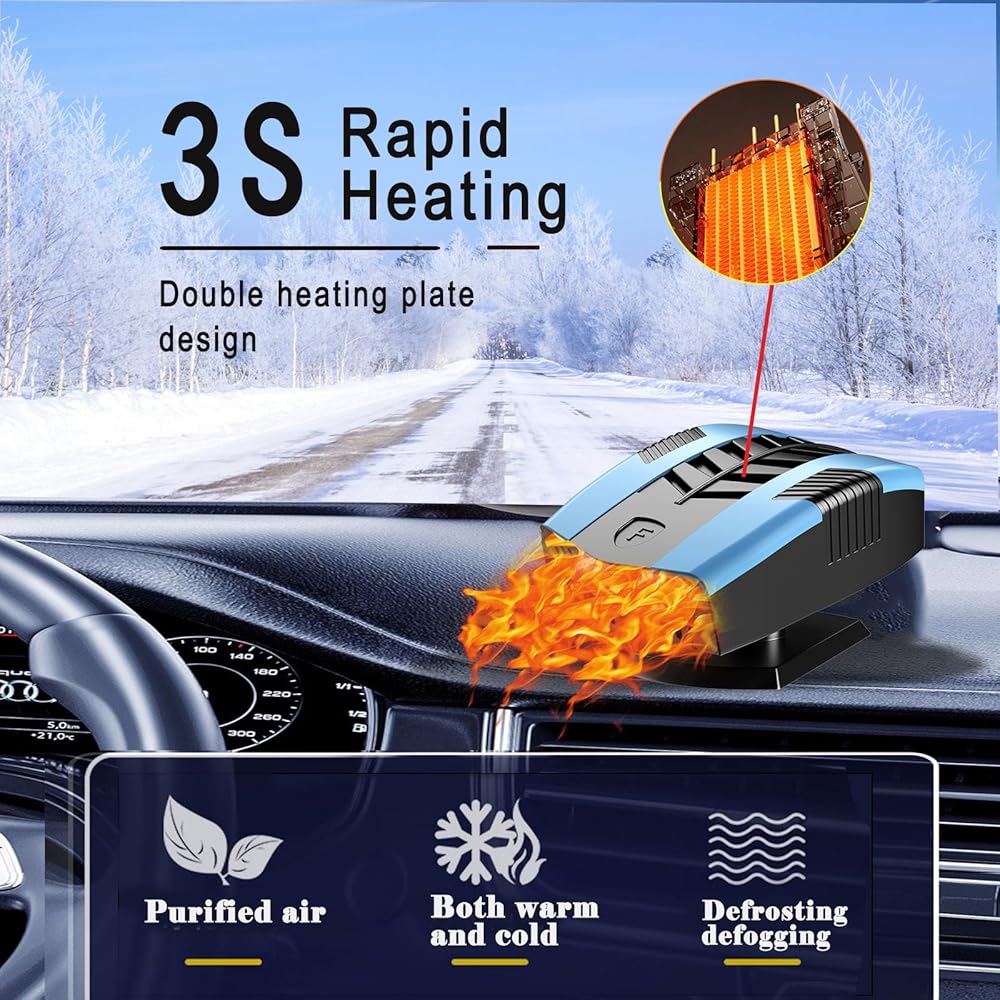 • 【تذويب وإزالة الضباب في وقت قصير】قل وداعًا للنوافذ الضبابية! يقوم هذا السخان بتنظيف الزجاج الأمامي الخاص بك بسرعة ويقلل من الرطوبة الداخلية، مما يمنحك رؤية واضحة وقيادة أكثر أمانًا. قم بتوجيه الفتحات نحو الزجاج الأمامي للحصول على أفضل النتائج.