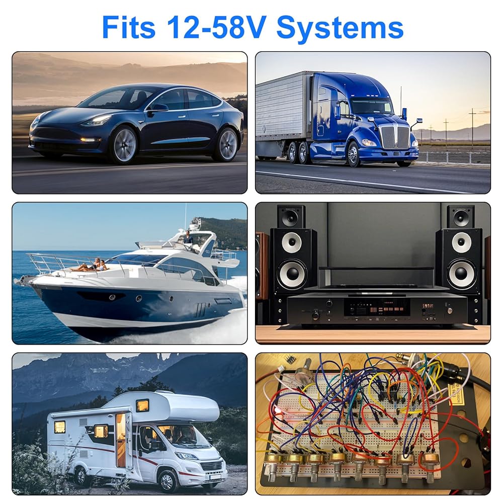 توافق عالمي: مُصنف لأنظمة تيار مستمر 12-58 فولت، لذلك تعمل مجموعة مصهر السيارات هذه في السيارات والشاحنات والقوارب ومكبرات الصوت وأجهزة الاستريو والأنظمة الإلكترونية الأخرى