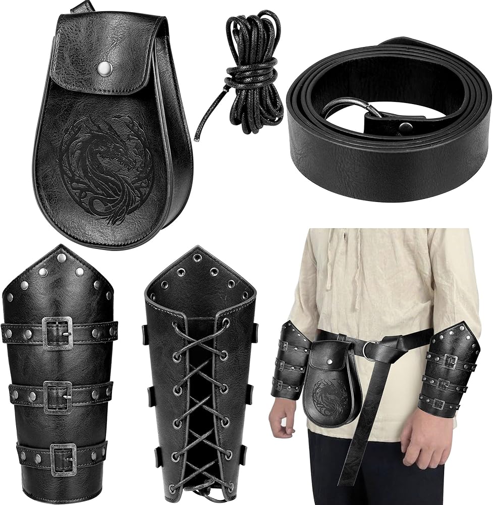 Renaissance Accessory Set: includes a pair of wrist guards, a fanny pack, and a belt made of high quality leather and hardware.