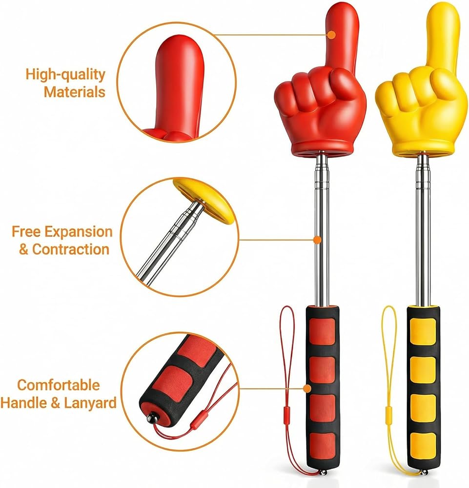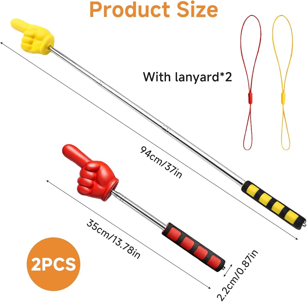 • Vibrant 2-Piece Set & Precise Sizes: Comes with 2 pieces of pointer finger sticks in red and yellow, meeting multiple usage needs or shared use in classrooms. The finger part features an average length of 3.15-3.94 in and width of 2.17 in, designed to mimic real finger shape for intuitive pointing. Teacher pointer finger, pointer hand