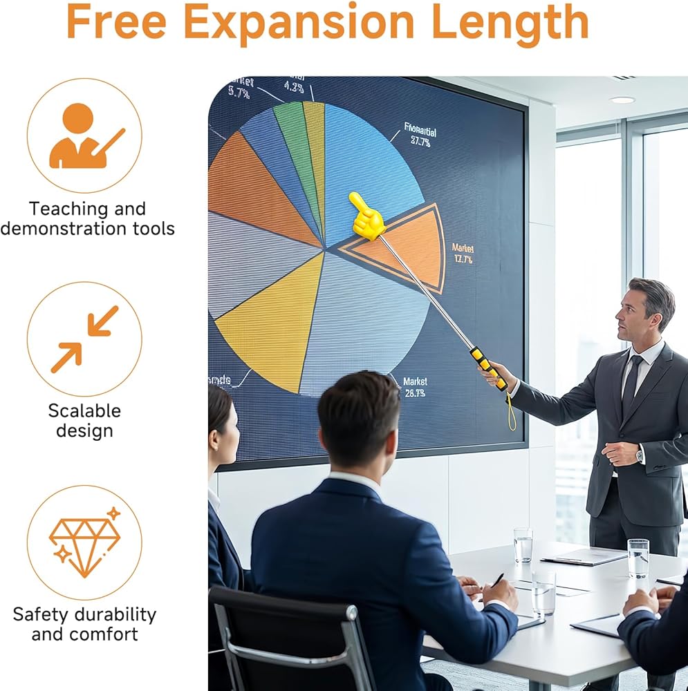 • Easy Operation & Wide Application: No complex assembly required, simply stretch or retract the pointing stick to adjust the length as needed. Suitable for teachers, students, presenters, trainers and public speakers, becoming an essential tool for effective communication. Extendable pointer finger, finger pointer stick