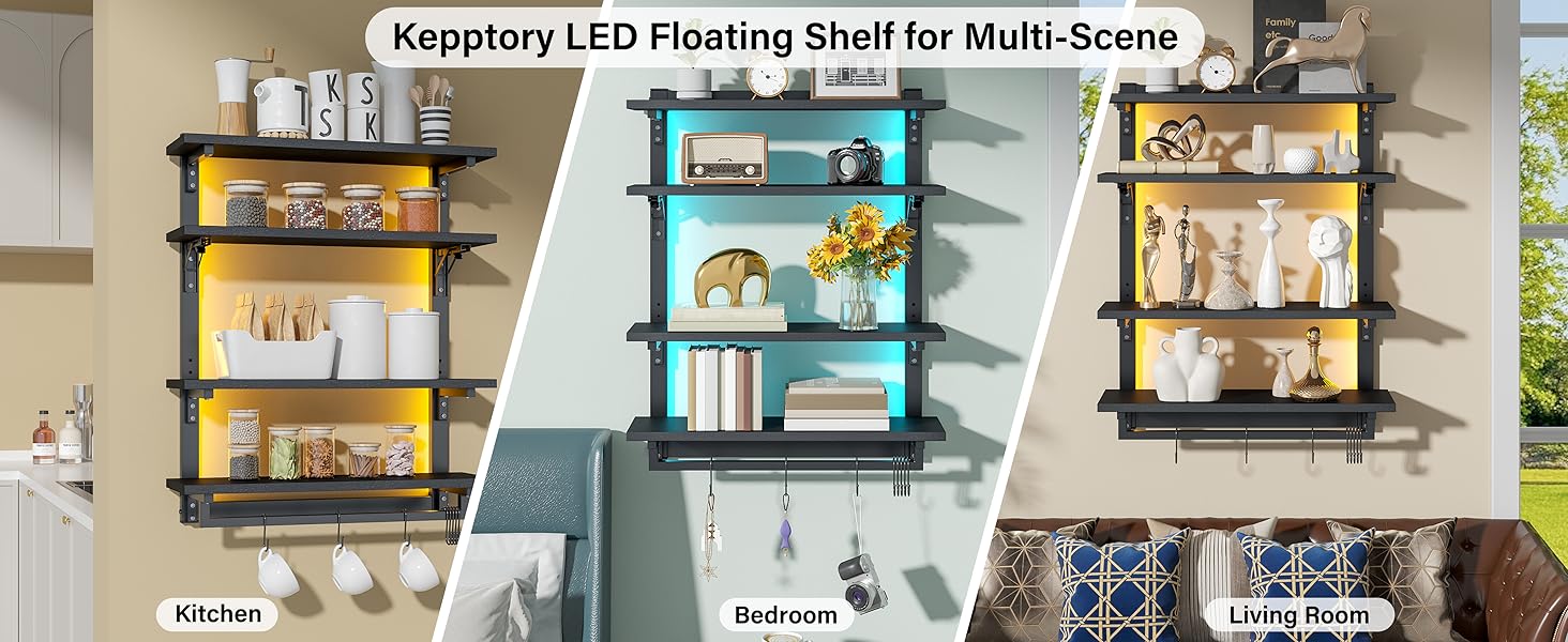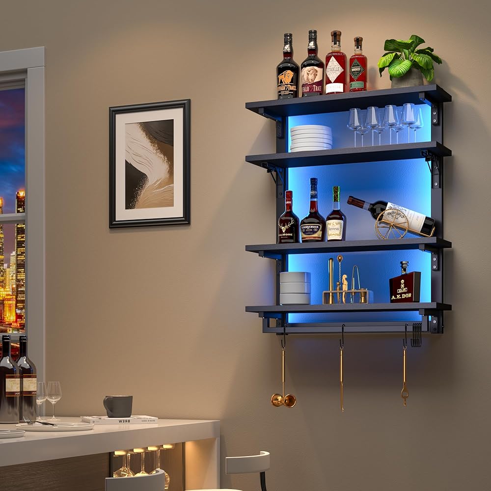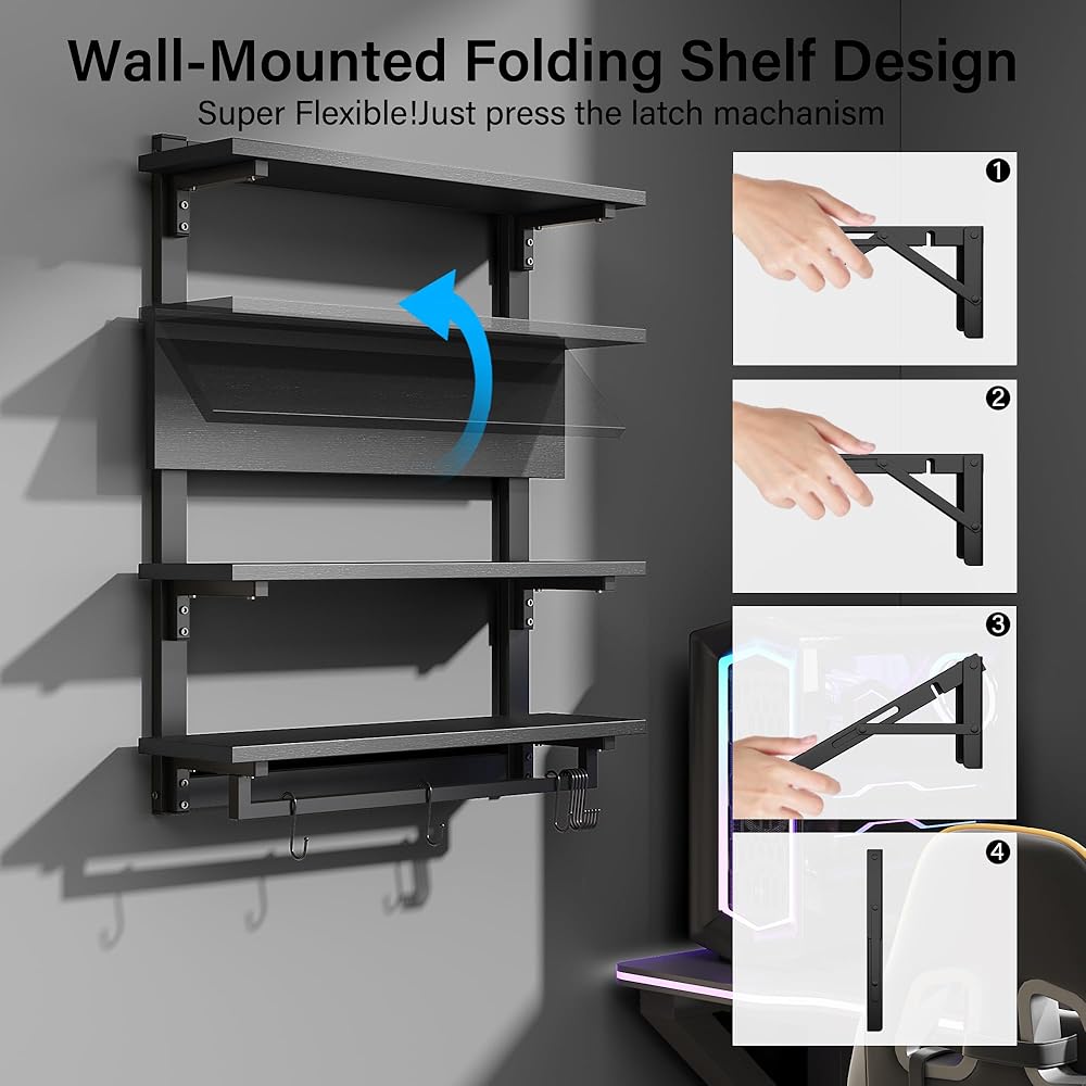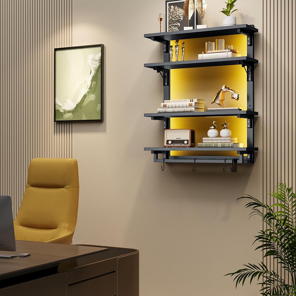 • 【نظام تخزين جداري لزيادة المساحة】يتميز هذا الرف المثبت على الحائط LED المكون من 4 طبقات (23.6 بوصة طول × 33.8 بوصة ارتفاع) بمقصورات متعددة الاستخدامات + شريط منشفة سفلي مع 8 خطافات على شكل حرف S. قم بتنظيم وحدات التحكم وسماعات الرأس ووحدات التحكم والمقتنيات مع تحسين المساحة الرأسية.