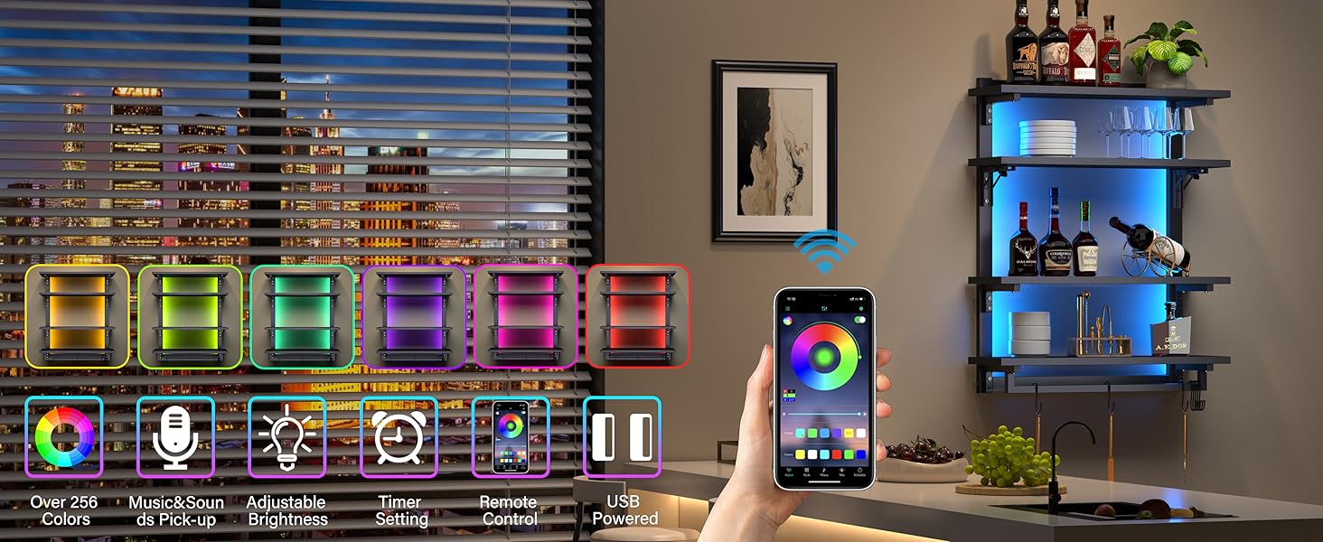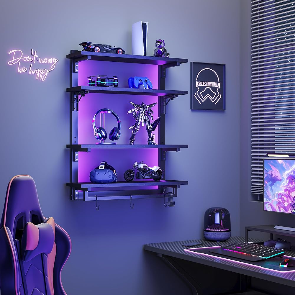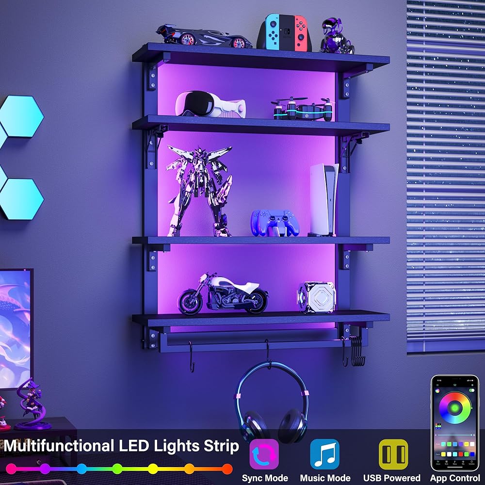 • 【أرفف عائمة للألعاب LED RGB ديناميكية】قم بإضاءة مساحتك باستخدام مصابيح LED التي يتم التحكم فيها عن طريق التطبيق والتي تتميز بملايين الألوان وسطوع قابل للتعديل ووضع مزامنة الموسيقى. يحول أي غرفة إلى ساحة رياضات إلكترونية غامرة مع عروض ضوئية نابضة بالإيقاع.