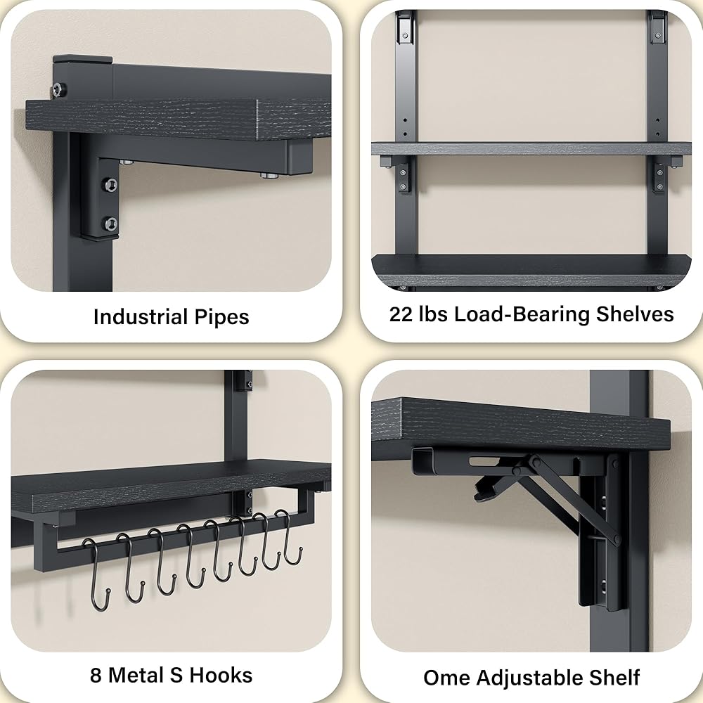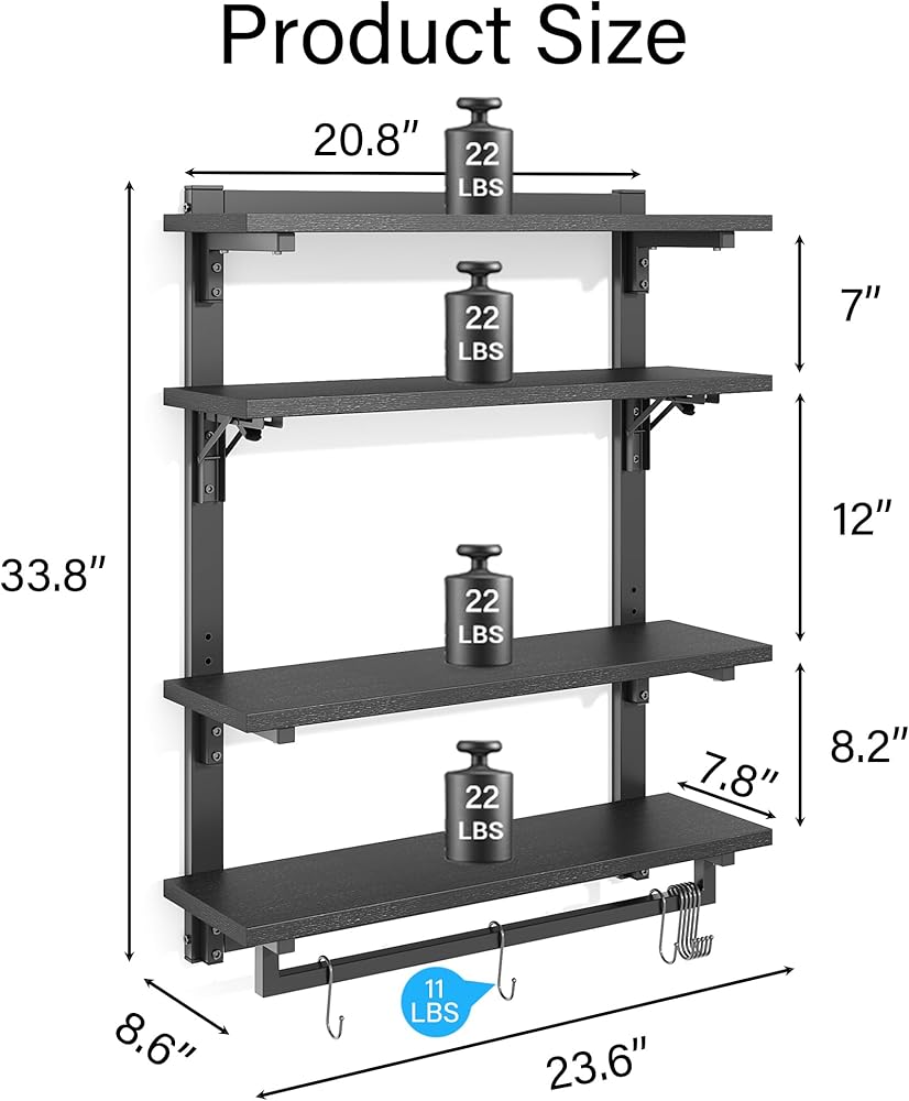 • 【ثبات من الدرجة الصناعية】هيكل خشبي هندسي مع إطار أنبوب معدني مقوى يحمل بشكل آمن 22 رطلاً. مثبت ببراغي لمنع الترهل أو السقوط - الرف العائم المتين للألعاب للمعدات الثقيلة.