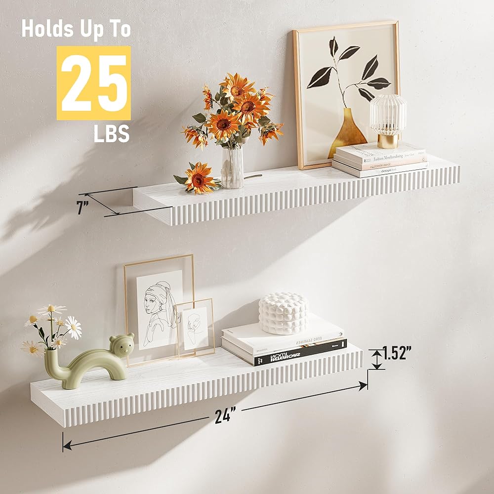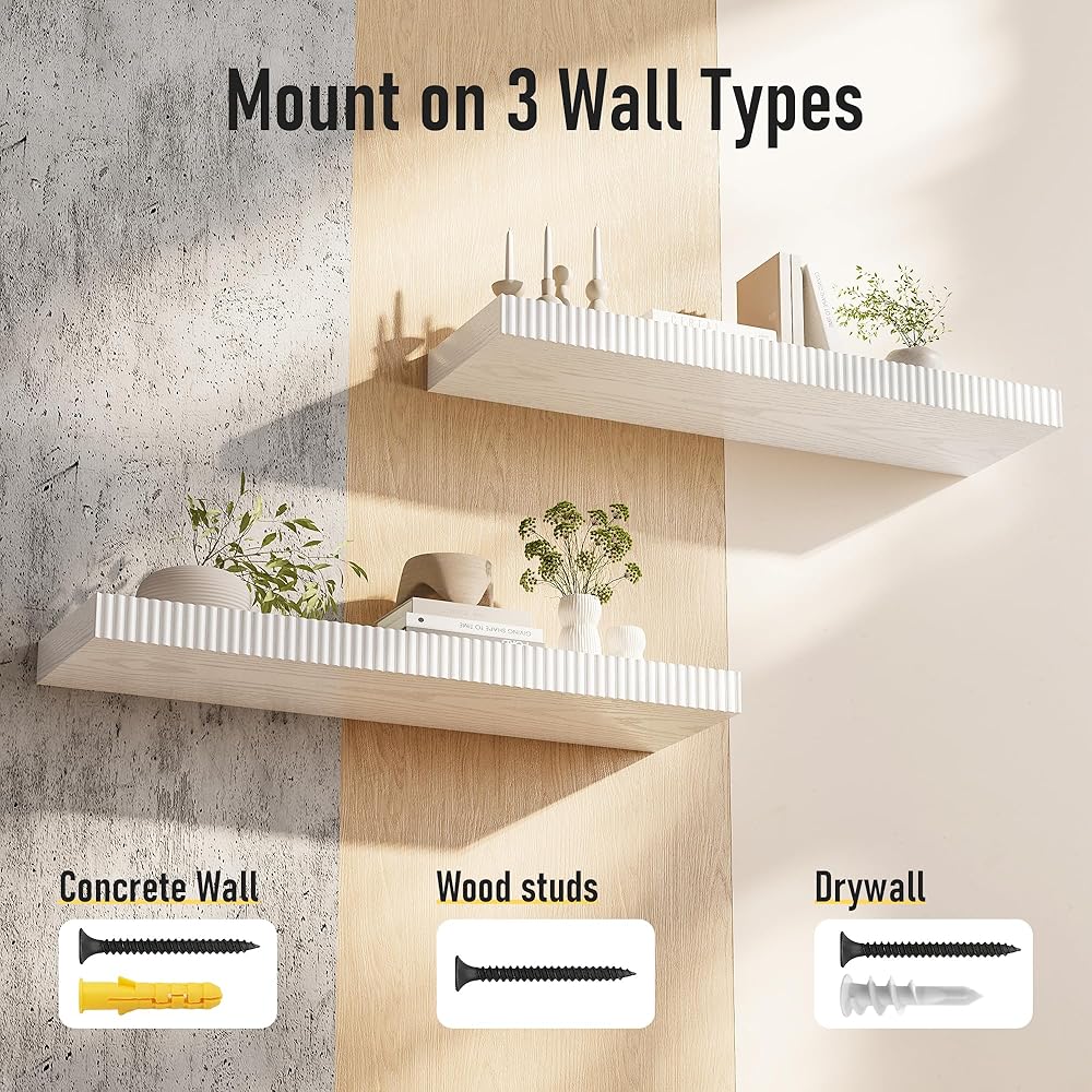 سهل التركيب: قل وداعًا للإعدادات المعقدة؛ تأتي أرففنا المزخرفة مع جميع الأجهزة الضرورية والتعليمات الواضحة، مما يجعل التثبيت سهلاً ويسمح لك بالاستمتاع بمساحة التخزين الجديدة الخاصة بك بسرعة.