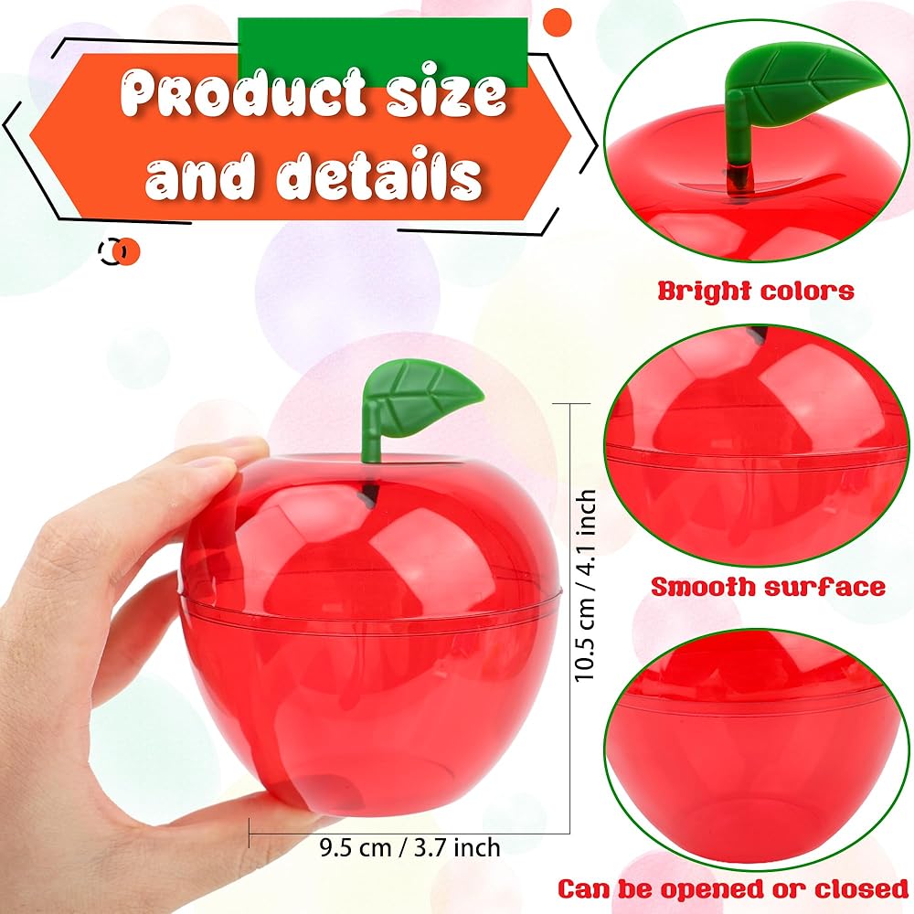 • 2)Suitable and ideal size: the size of this plastic apple container is about 9.5 x 10.5 cm/ 3.74 x 4.13 inches, and the capacity is suitable for storing various small and medium-sized items, making storage practical and beautiful. Very suitable for storing candies, cosmetics, gifts, or decorations