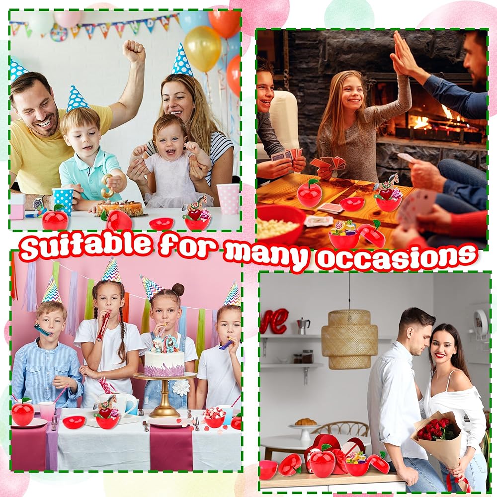 • 4)Suitable for many occasions: our red apple container can not only hold candies, chocolates, small jewelry, etc. as gifts or wedding souvenirs, leaving a deep impression on people, but can also be used as table decorations to place snacks and ornaments, adding a warm atmosphere. It is also an ideal choice for teacher gifts, apple-themed decorations and classroom rewards