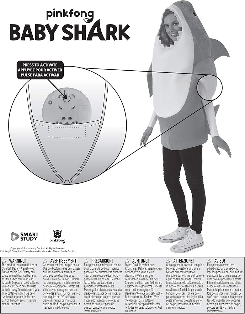 زي بيبي شارك للبالغين مرخص رسميًا؛ ابحث عن شعار العلامة التجارية على العبوات والملصقات للمساعدة في ضمان حصولك على منتج أصلي تم اختباره من حيث السلامة