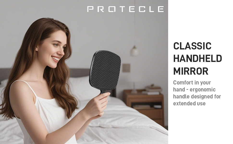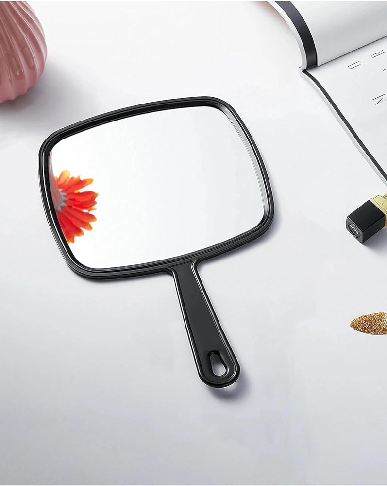 مرآة يدوية من بروتكيل، مقاس 10.3 سم طول × 7.4 سم عرض، مرآة محمولة لتصفيف الشعر مع مقبض، مربعة سوداء