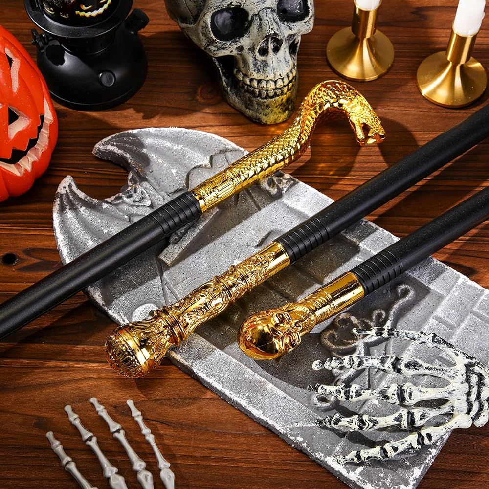 تتميز مجموعة عصا المشي العتيقة للهالوين بجاذبية خالدة لا تنتهي موضتها أبدًا. سواء كنت تتأنق كمحقق كلاسيكي أو مغامر بالبخار، ستضيف هذه العصي لمسة من السحر العتيق إلى مظهرك.
