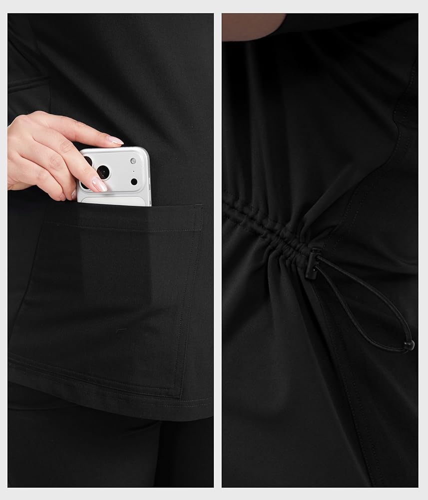 ناعم ومطاط وقابل للتنفس - مصنوع من نسيج ممزوج ناعم ومسامي مع ألواح جانبية قابلة للتمدد، يتحرك هذا القميص العلوي معك للحصول على ملاءمة مرنة. يبقيك تشعر بالانتعاش والانتعاش حتى أثناء المناوبات الطويلة، مما يوفر الراحة طوال اليوم
